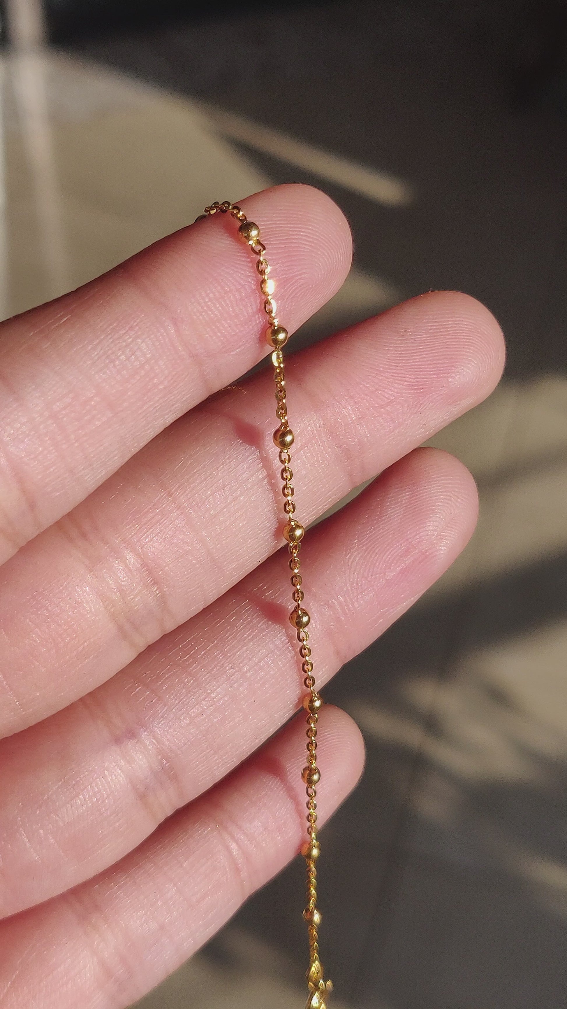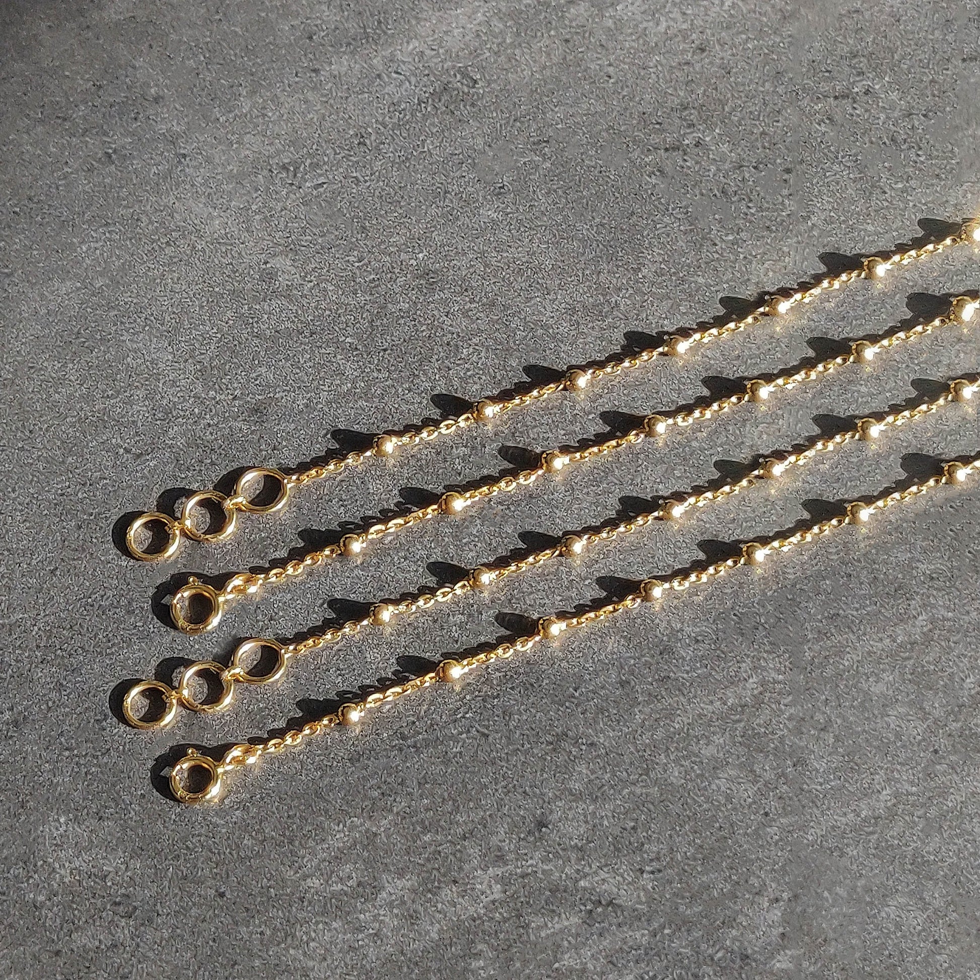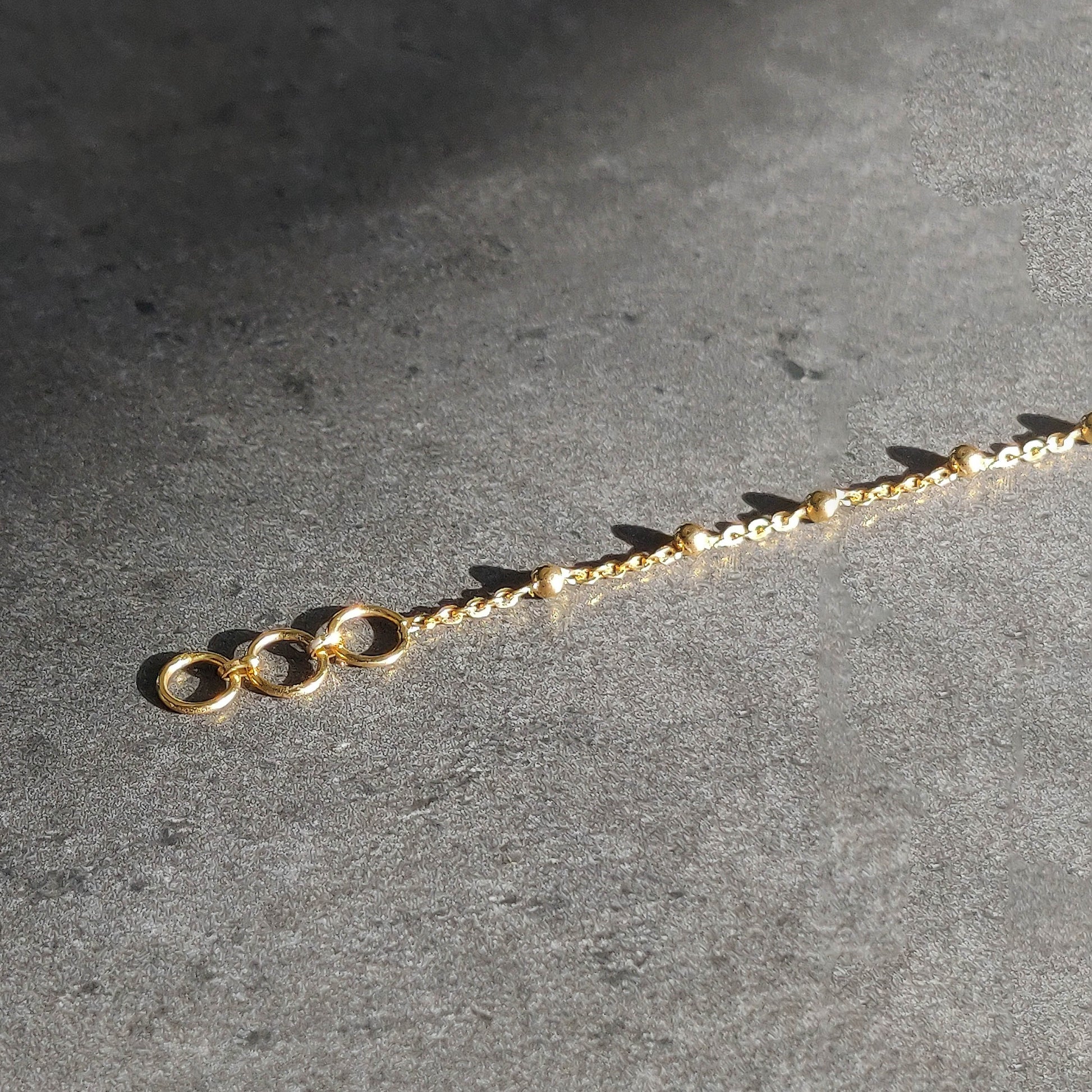 Crafted from high-quality 18K gold, this bracelet features gold balls that are spaced at regular intervals on a simple cable chain, creating a subtle yet eye-catching design. The lightweight construction makes it comfortable to wear all day long, while the timeless design ensures that it will remain a cherished piece for years to come.