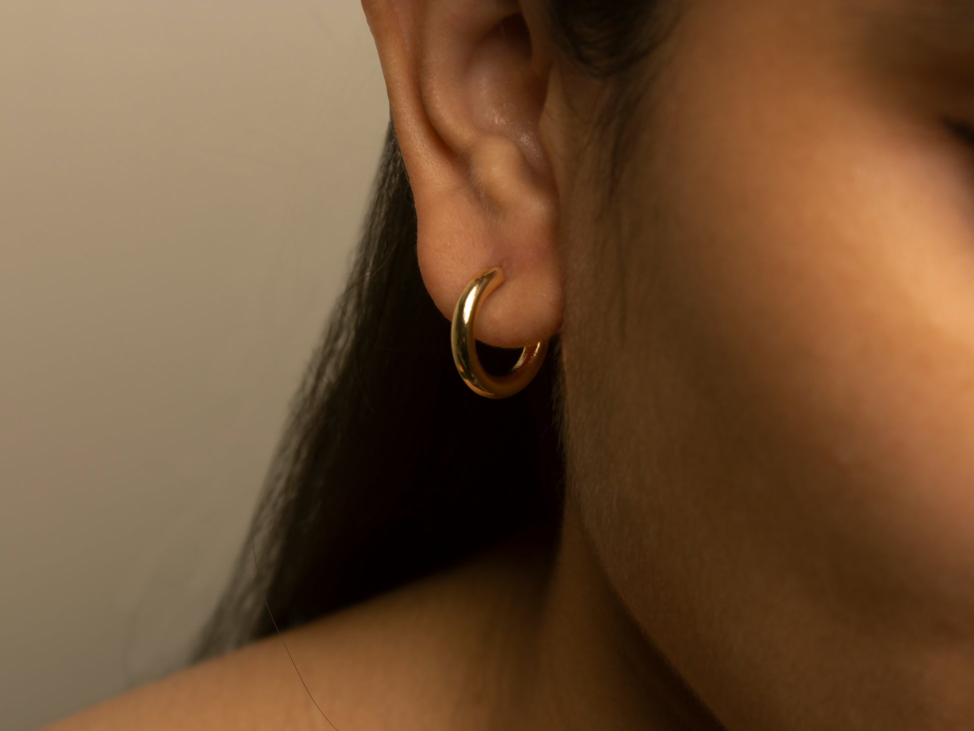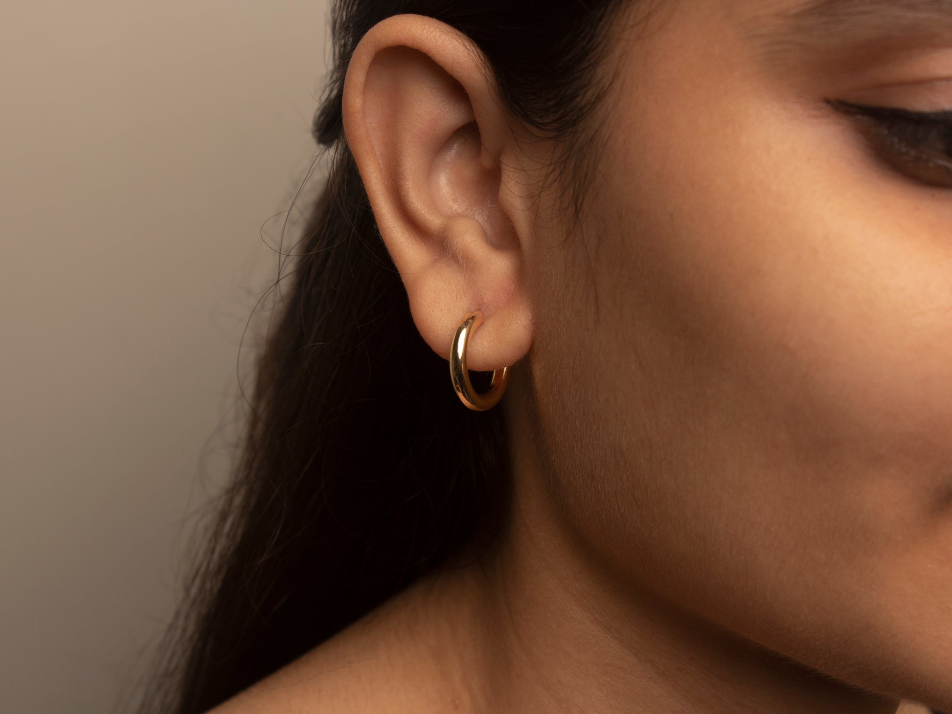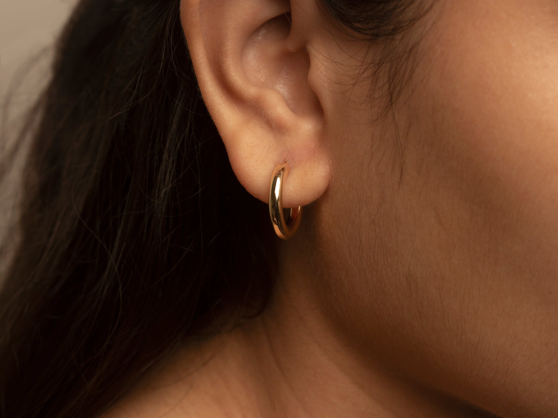 In any collection of essential pieces of jewelry, hoop earrings are, without a question, a linchpin—a must-have, a go-to, a classic staple. Regardless of size, metal, and material, hoop earrings never fail to make one feel more put together. Available in 18k Solid Gold.