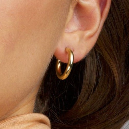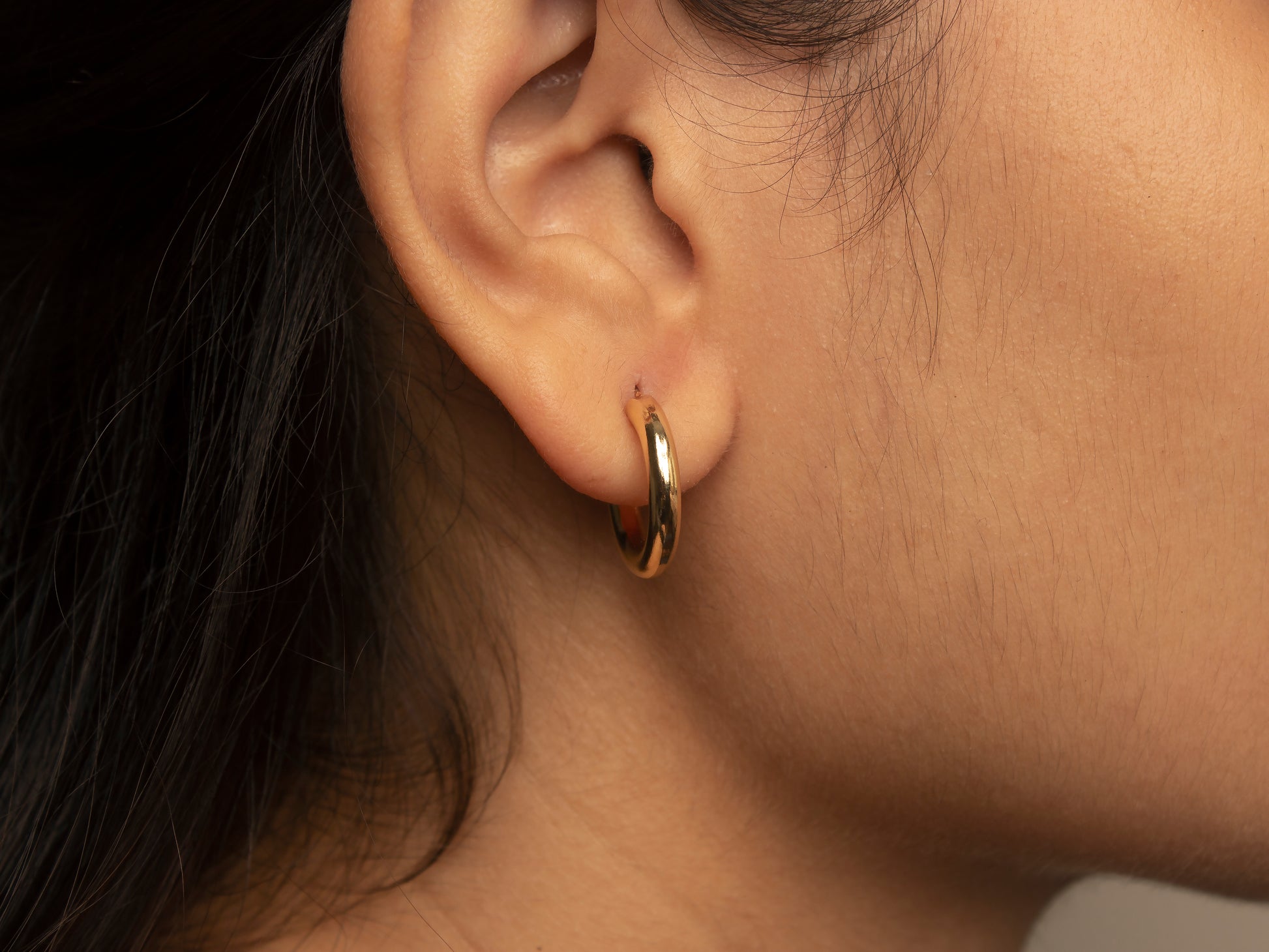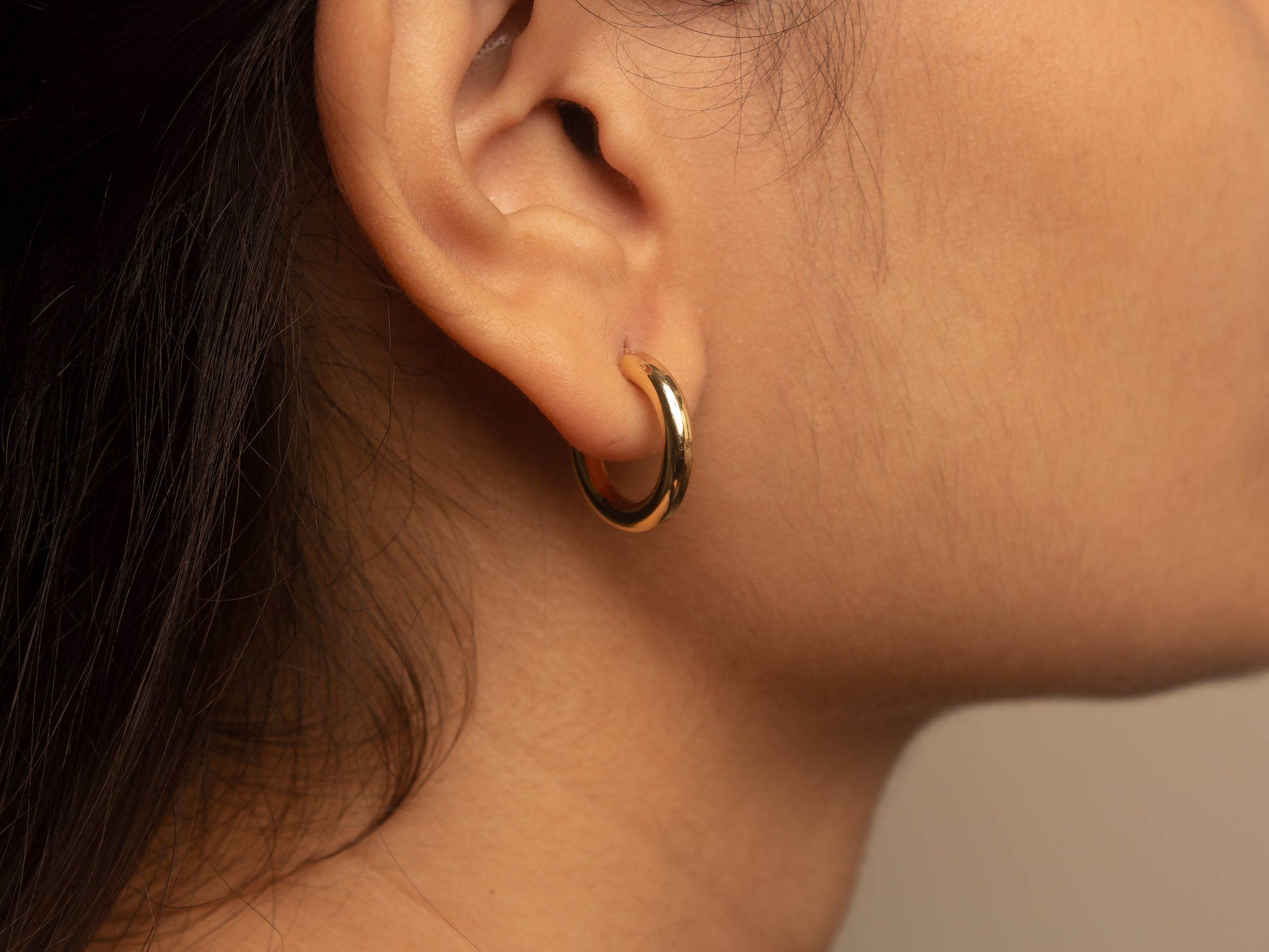 In any collection of essential pieces of jewelry, hoop earrings are, without a question, a linchpin—a must-have, a go-to, a classic staple. Regardless of size, metal, and material, hoop earrings never fail to make one feel more put together. Available in 18k Solid Gold.
