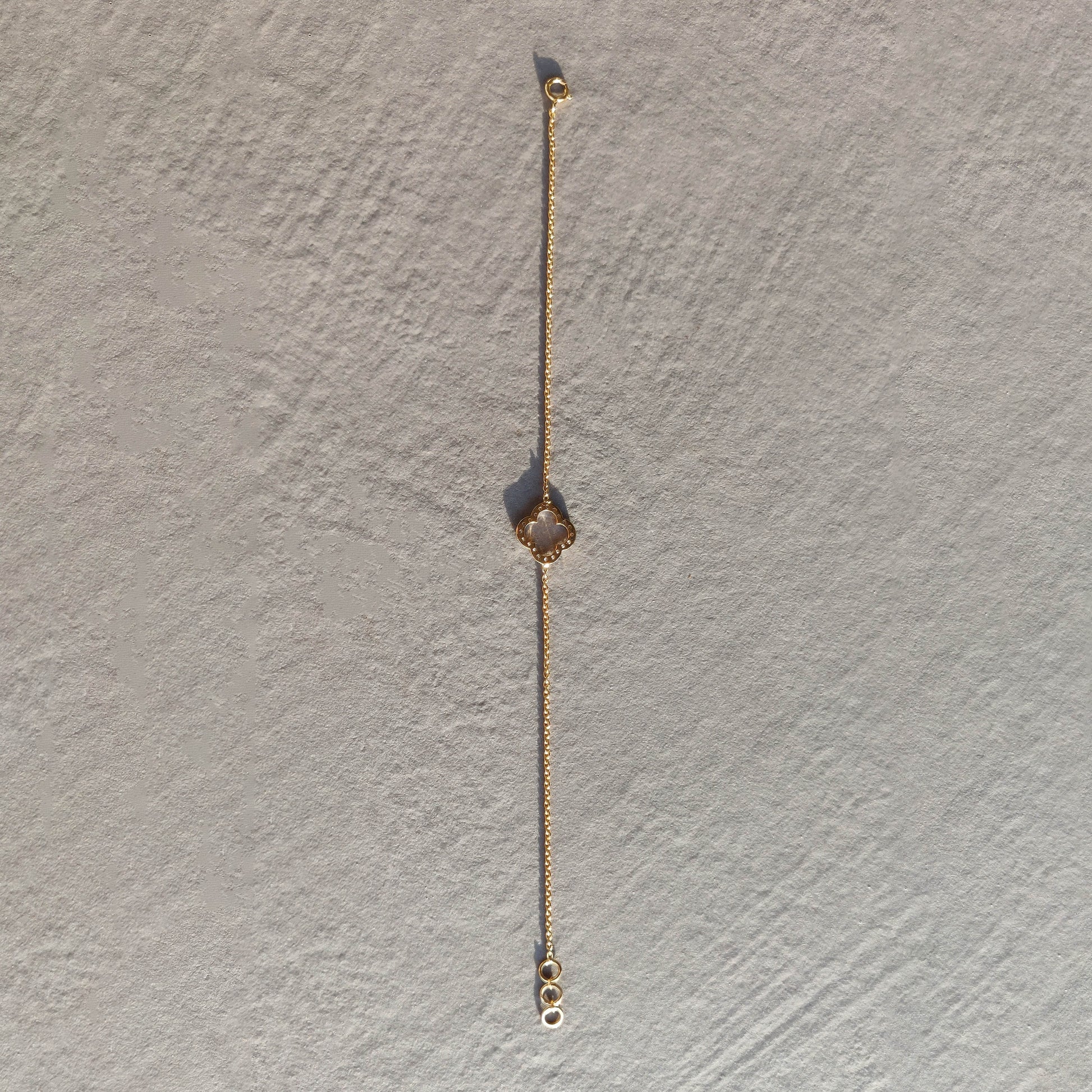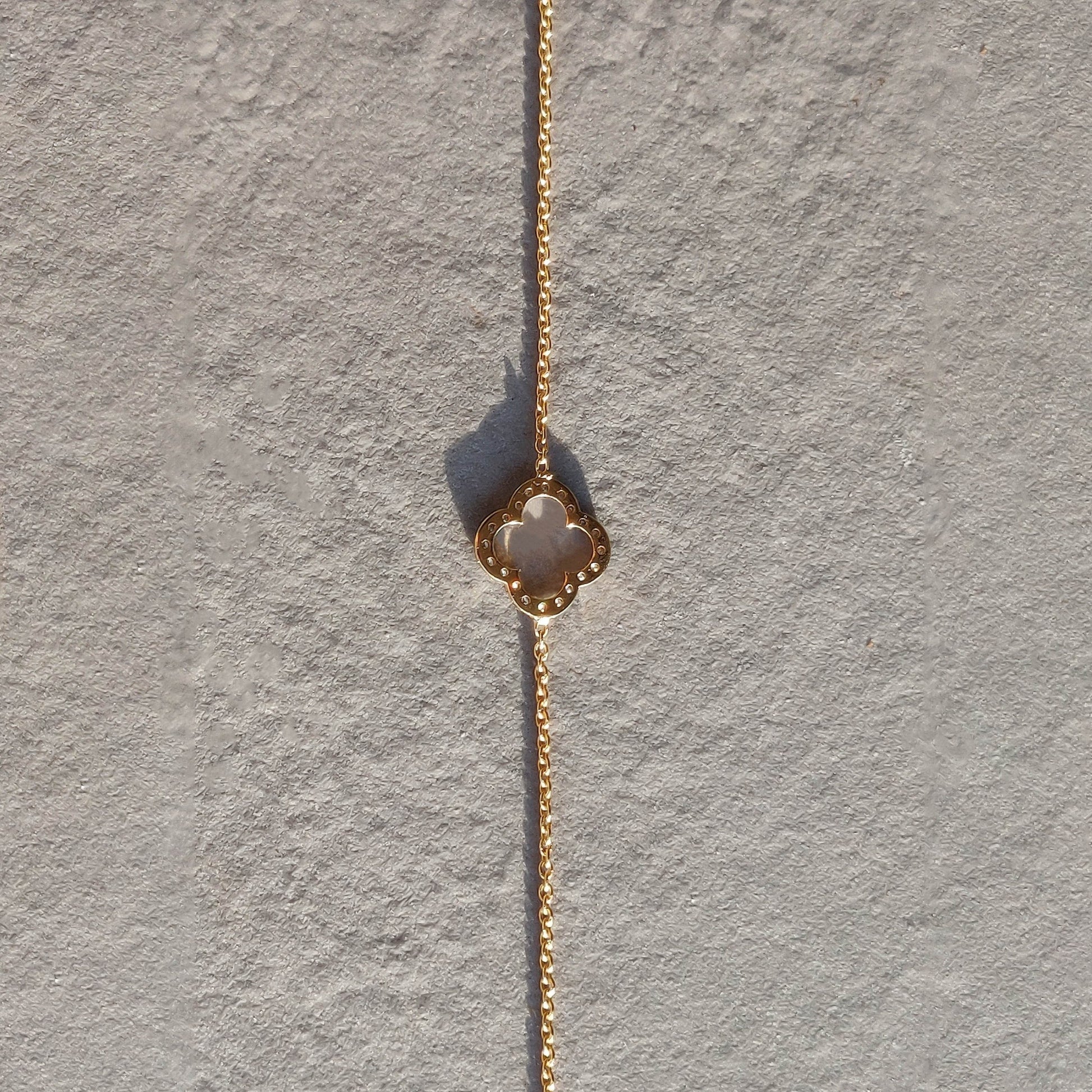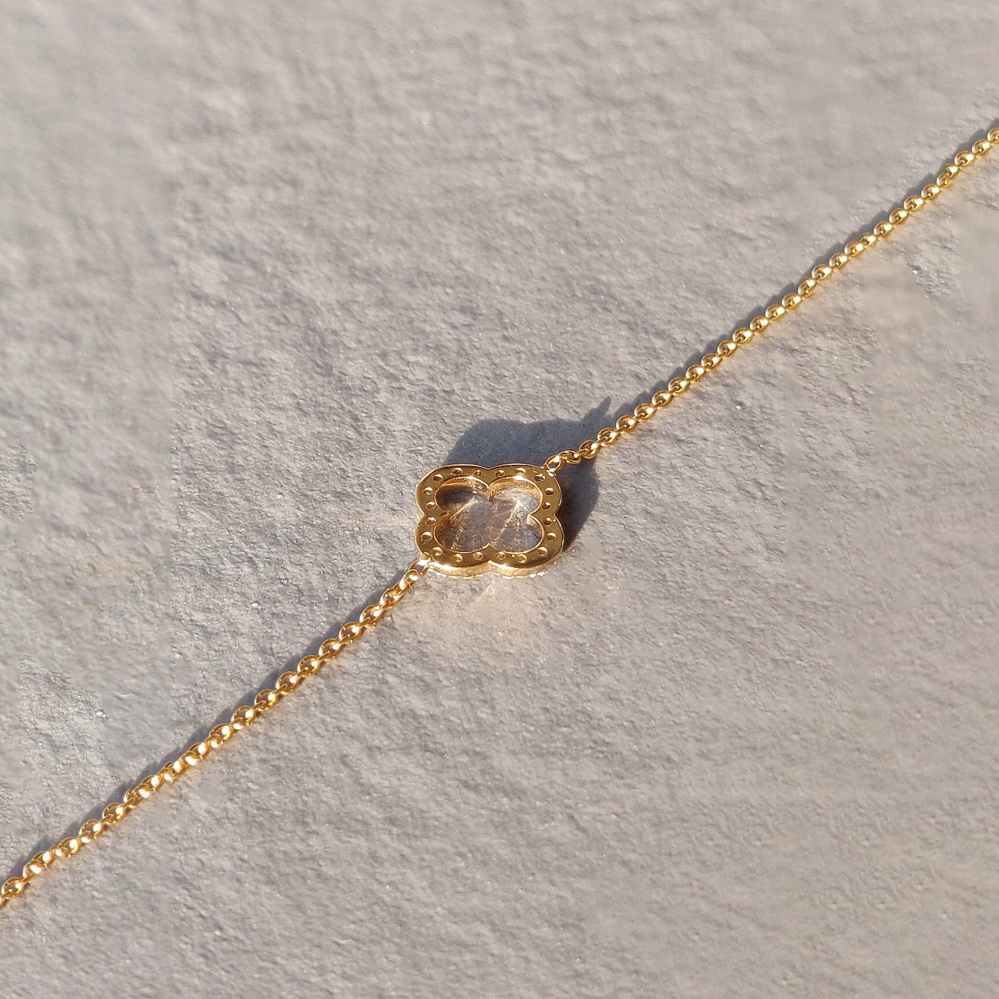 Behold the luckiest charm you'll ever wear on your wrist - the Clover Diamond Bracelet. Crafted with love and precision from 18k solid gold, this gorgeous piece features a delicate clover charm that sparkles with a cluster of brilliant diamonds.