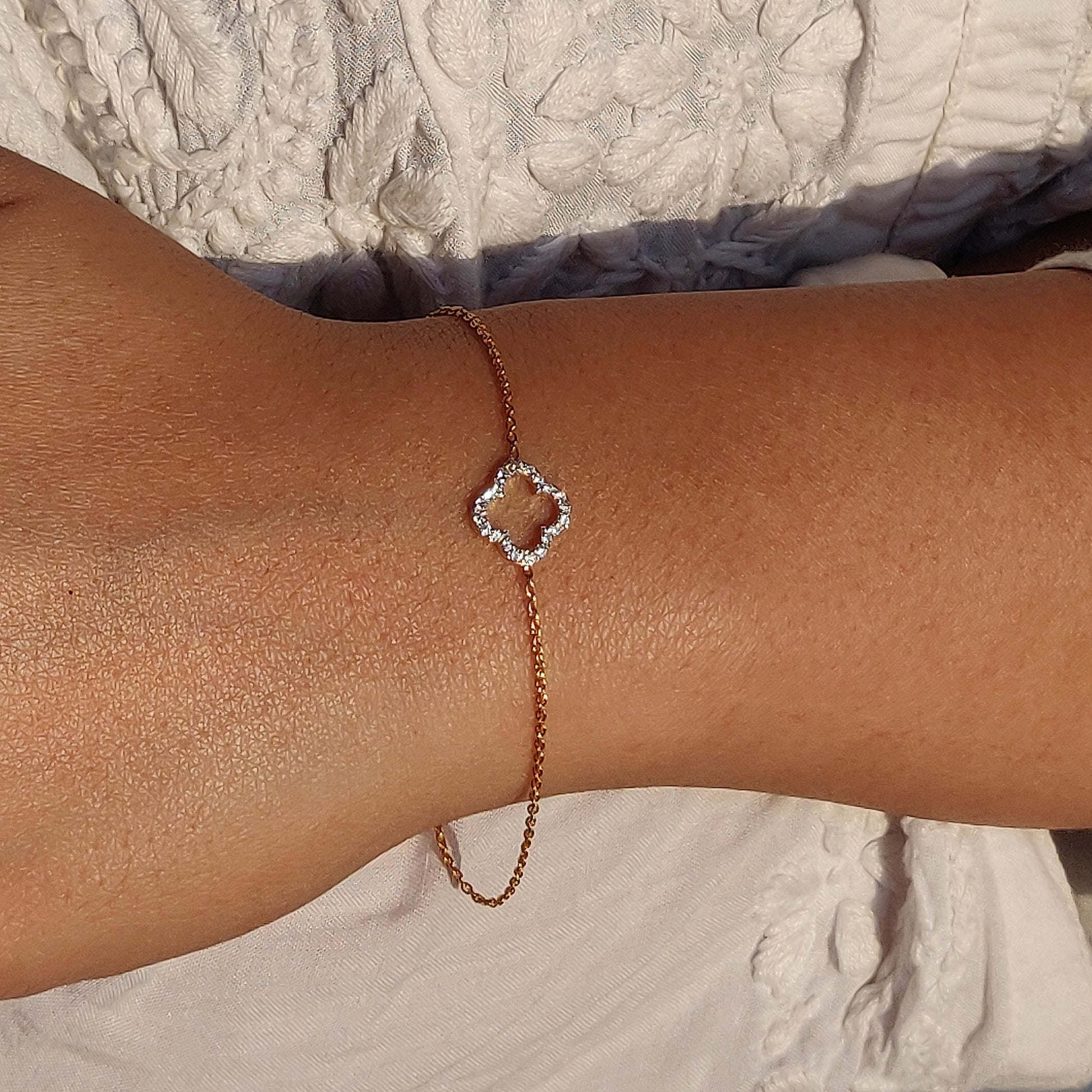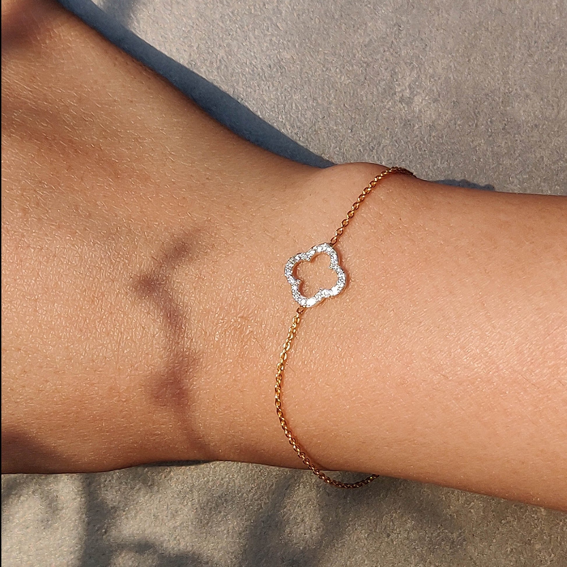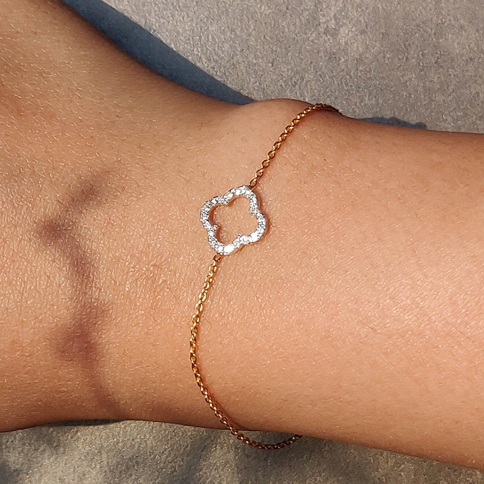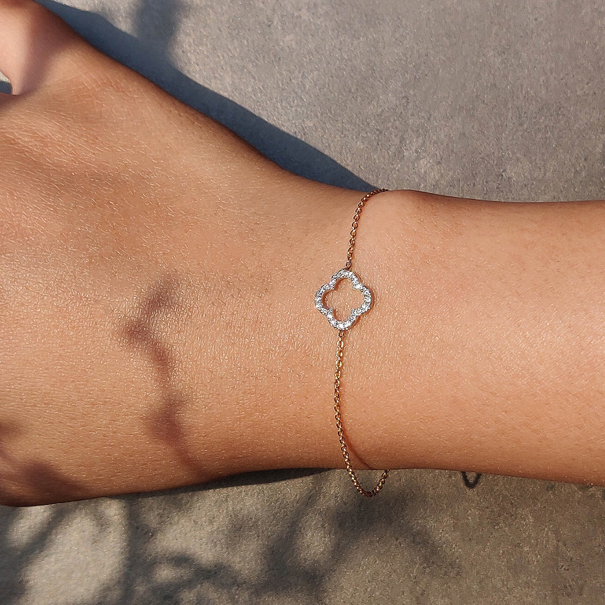 Whether you're dressing up for a fancy soirée or simply want to add a touch of glamour to your everyday attire, the Clover Diamond Bracelet is the perfect accessory to elevate any look. So why wait? Add a little bit of sparkle to your life today and let this gorgeous bracelet be your lucky charm for years to come.