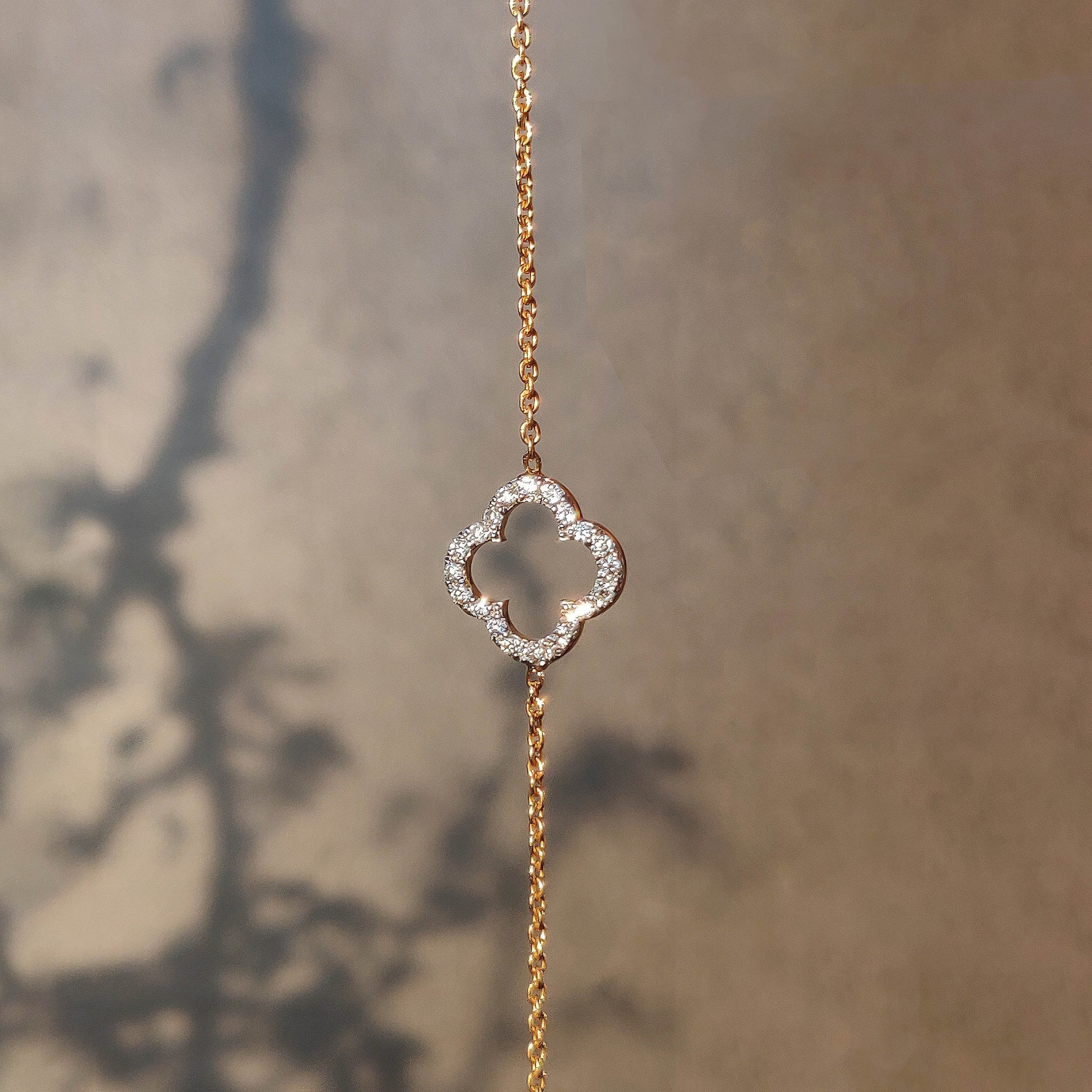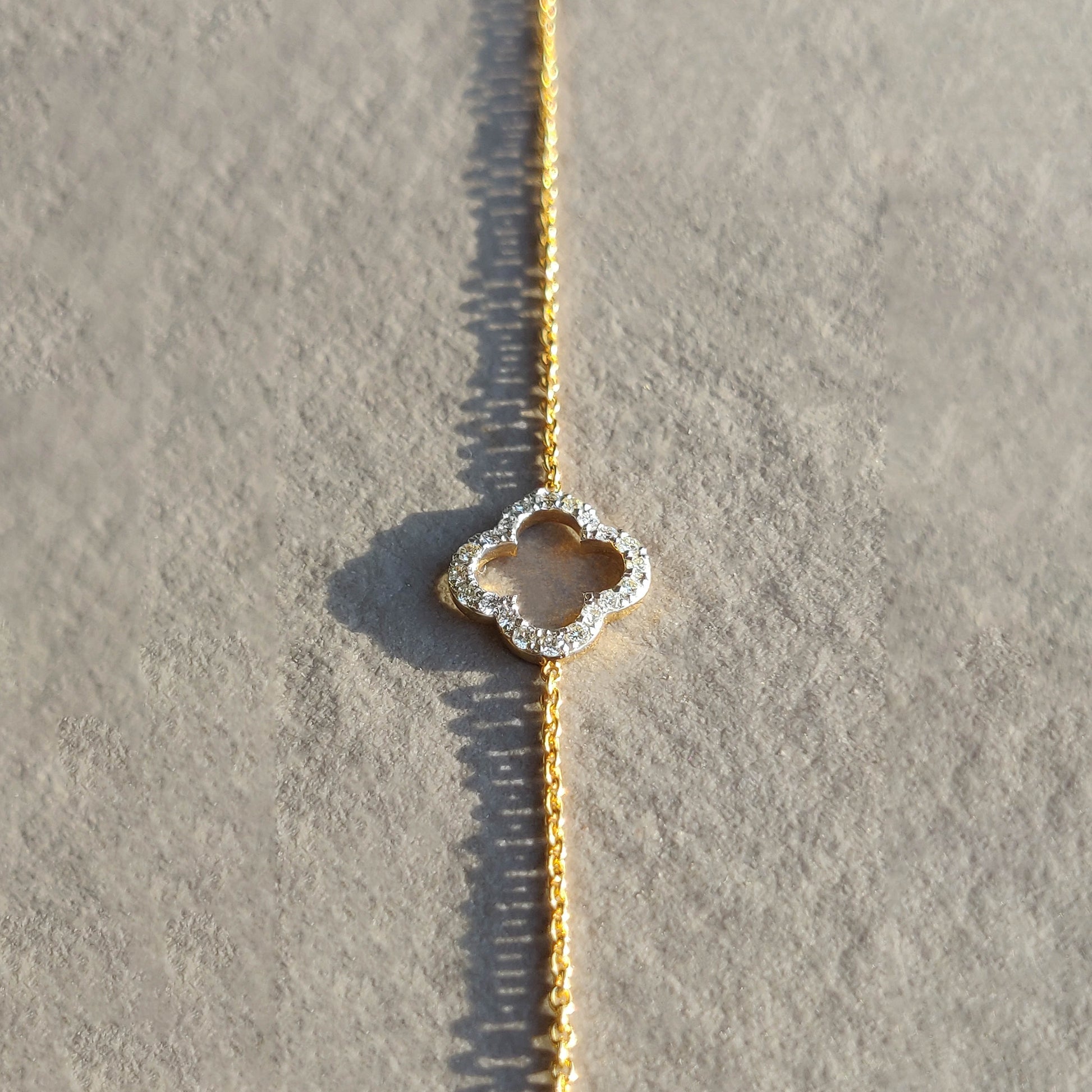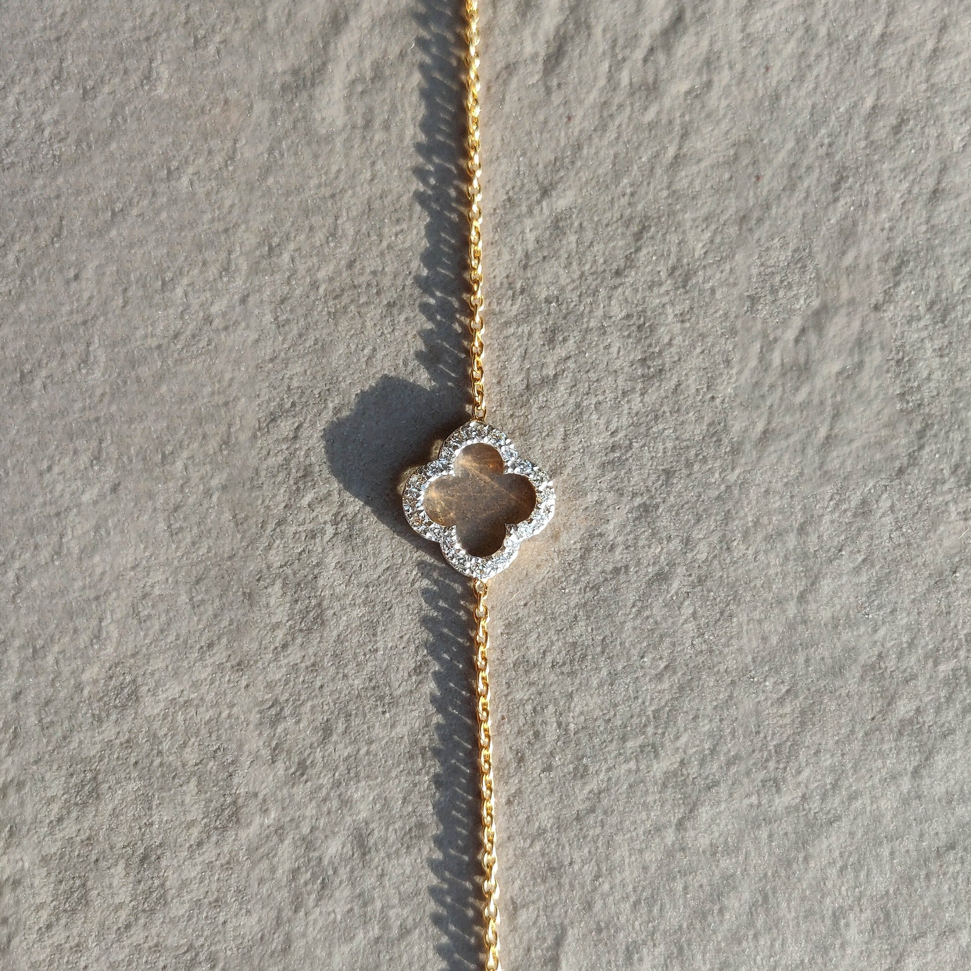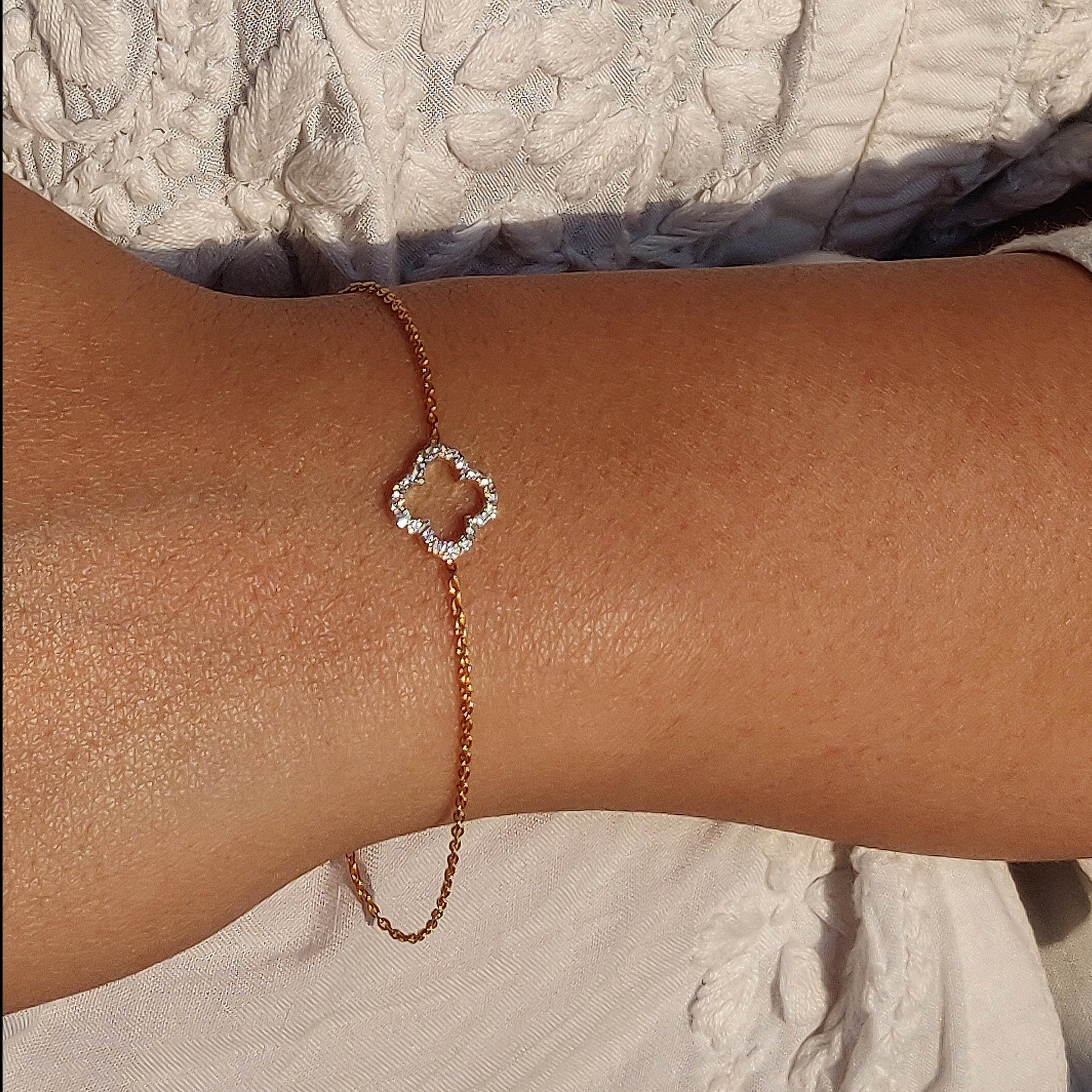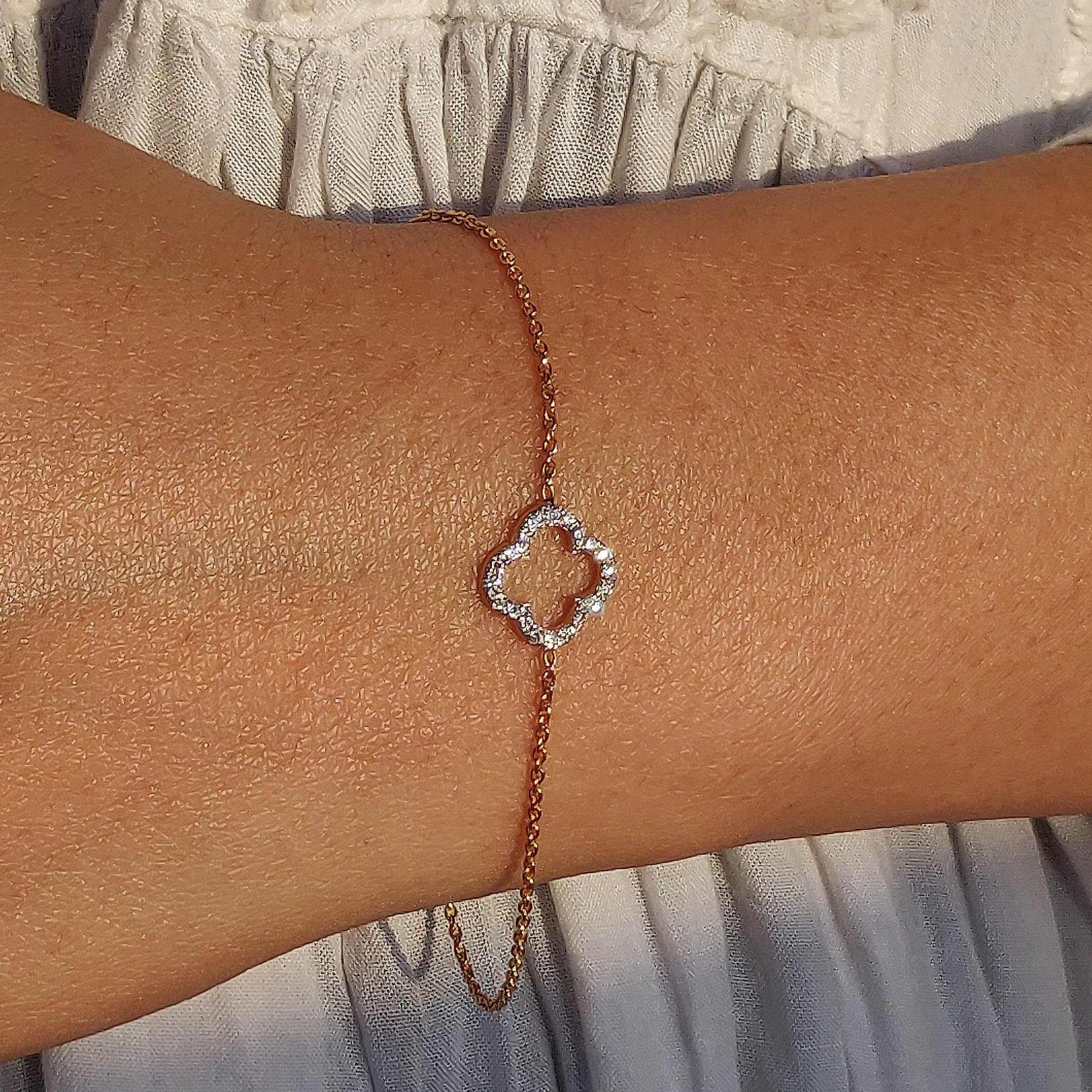 Whether you're dressing up for a fancy soirée or simply want to add a touch of glamour to your everyday attire, the Clover Diamond Bracelet is the perfect accessory to elevate any look. So why wait? Add a little bit of sparkle to your life today and let this gorgeous bracelet be your lucky charm for years to come.