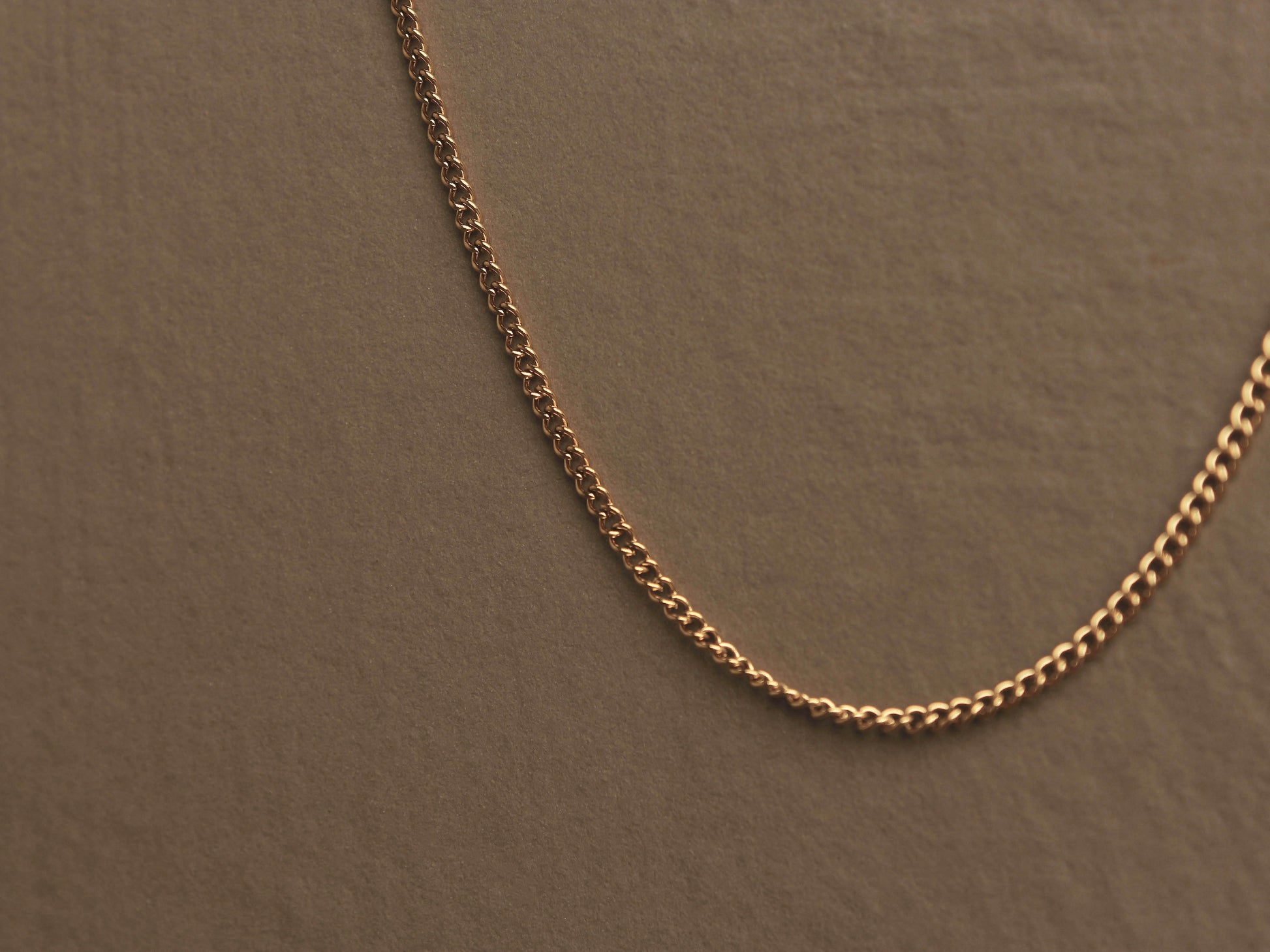 The Curb Gold Chain is simple and versatile to complete your jewelry collection. This essential classic is a must have for any wardrobe. Available in 18k & 14k Solid Gold.