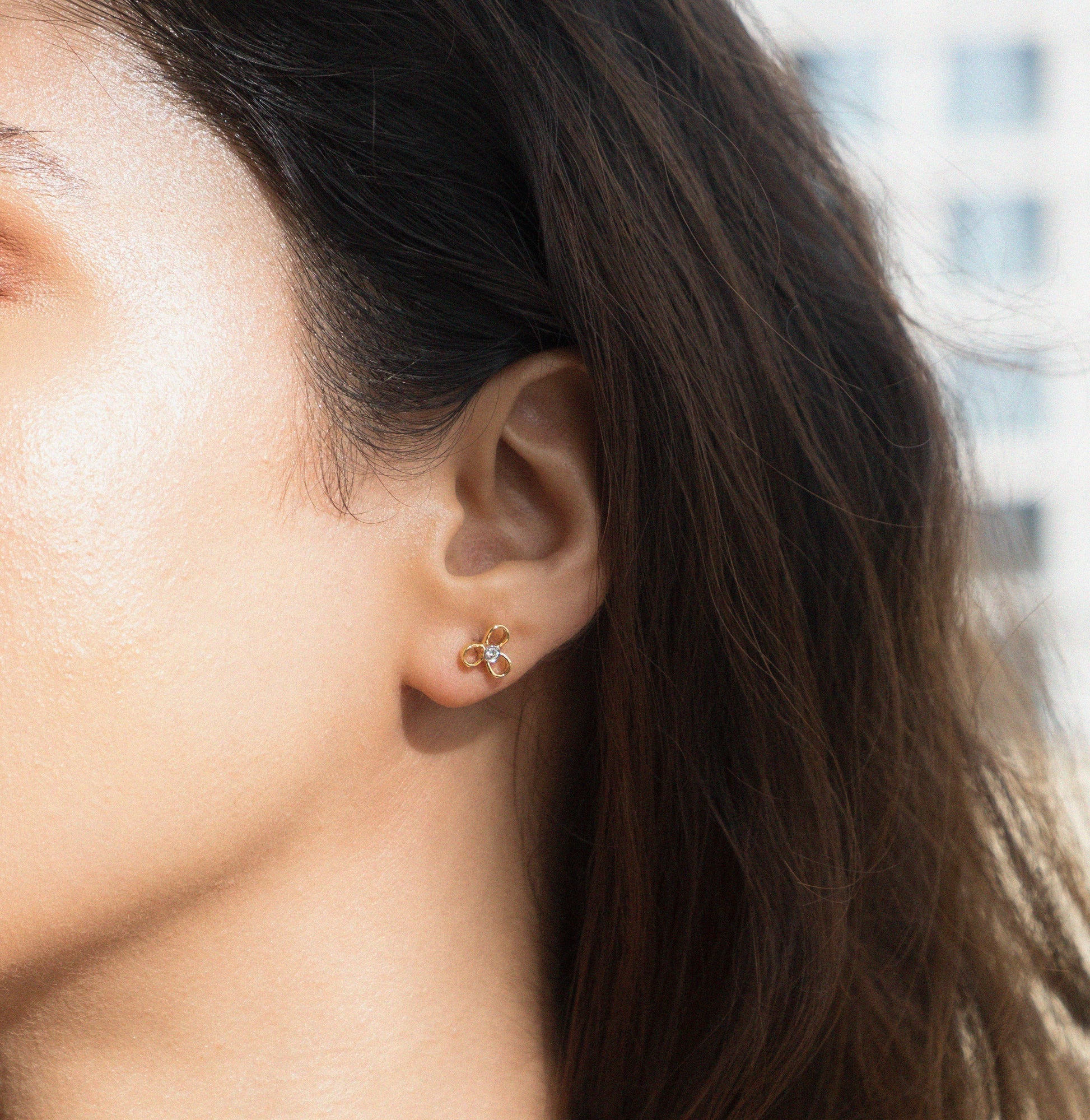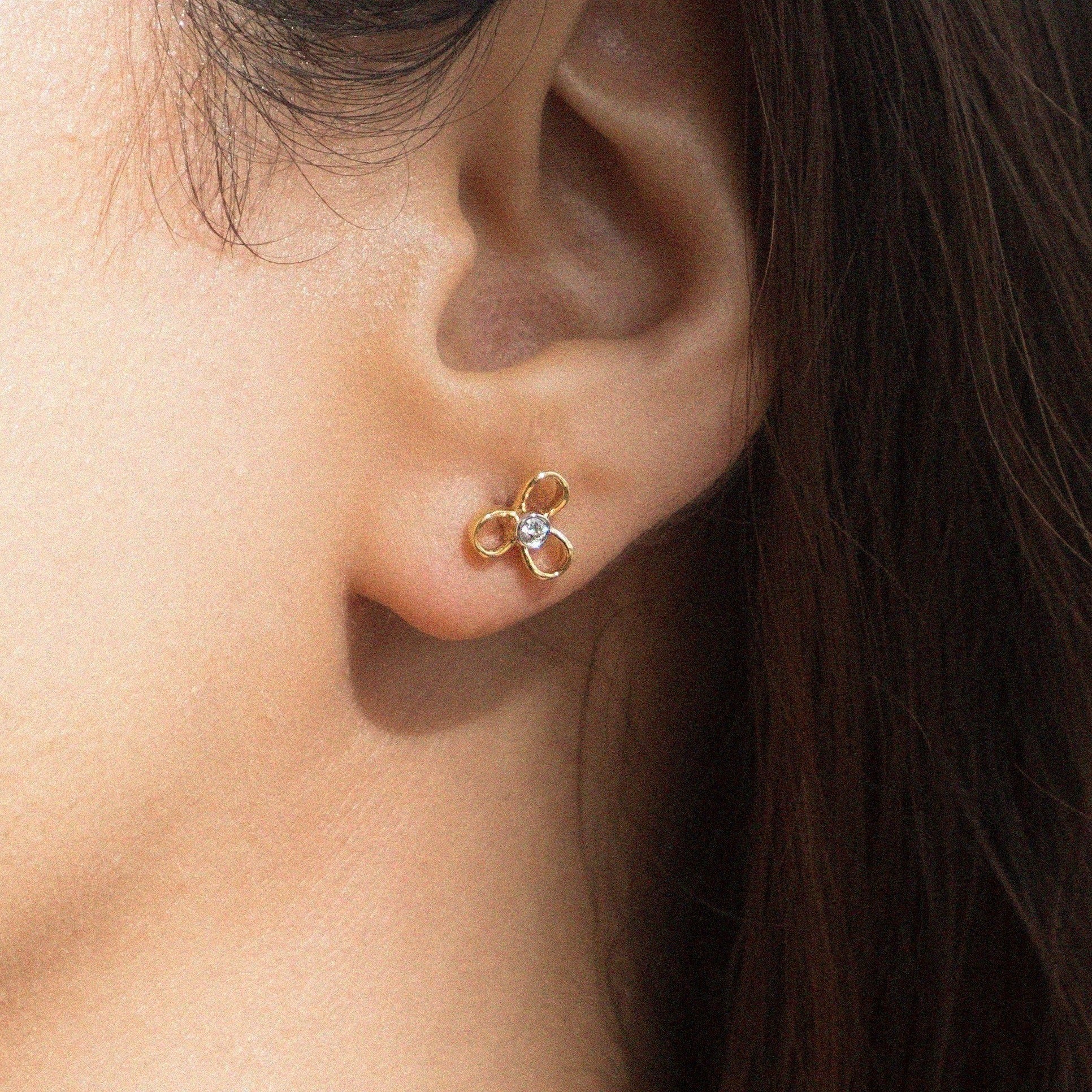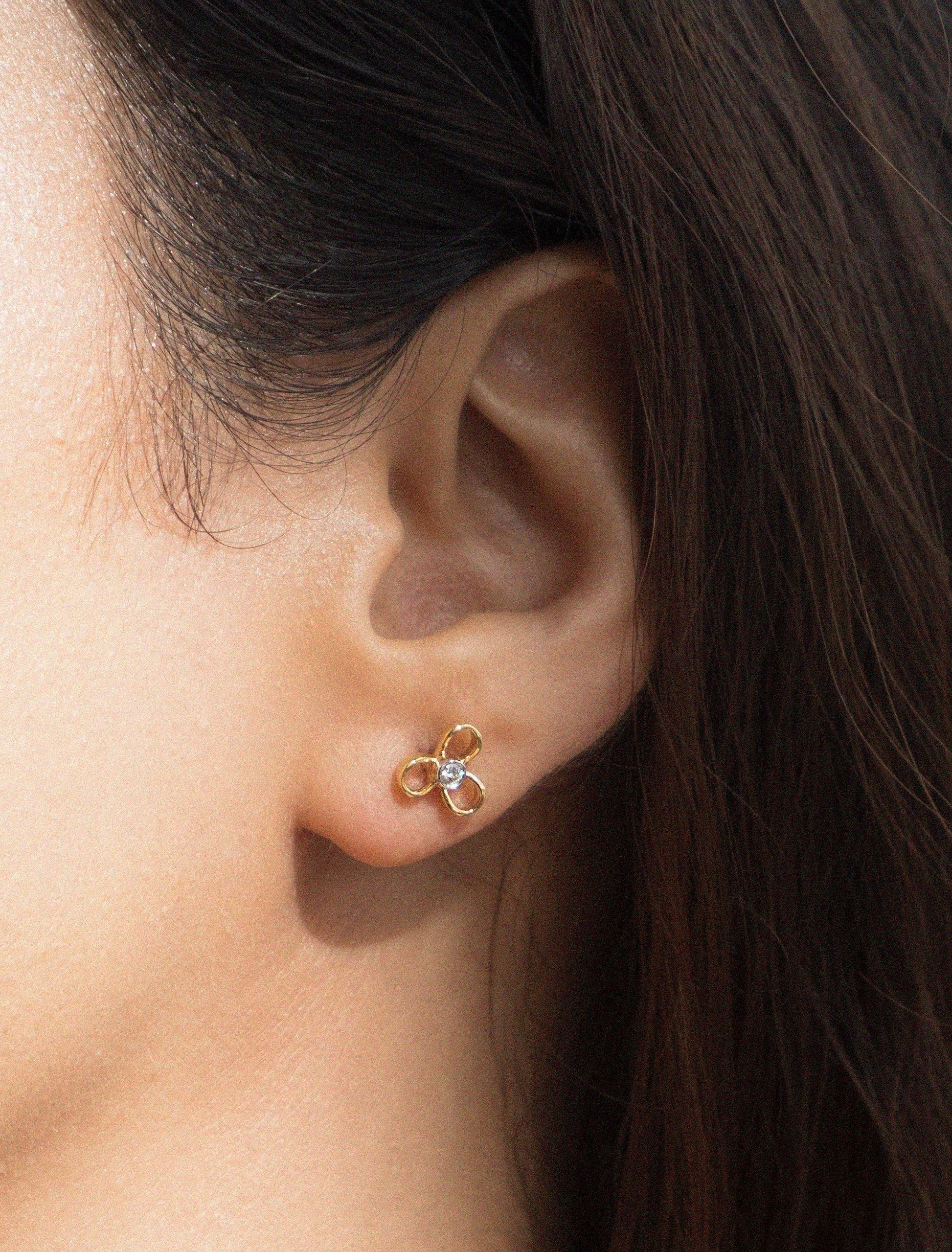 Lots of freshly picked gold petals with a slip of diamond to float on your lobes; without any of the spring allergies. Available in 18k Solid Gold.