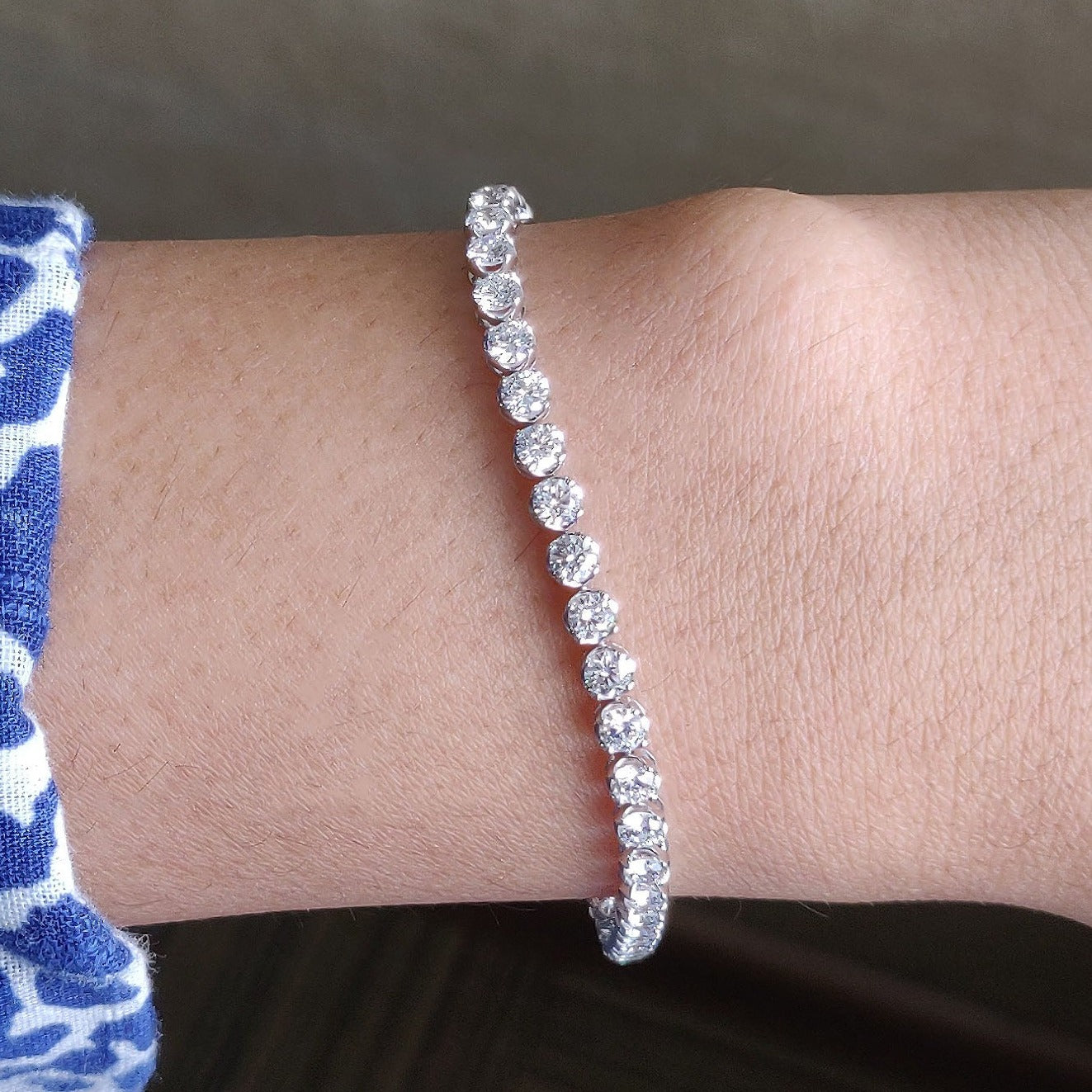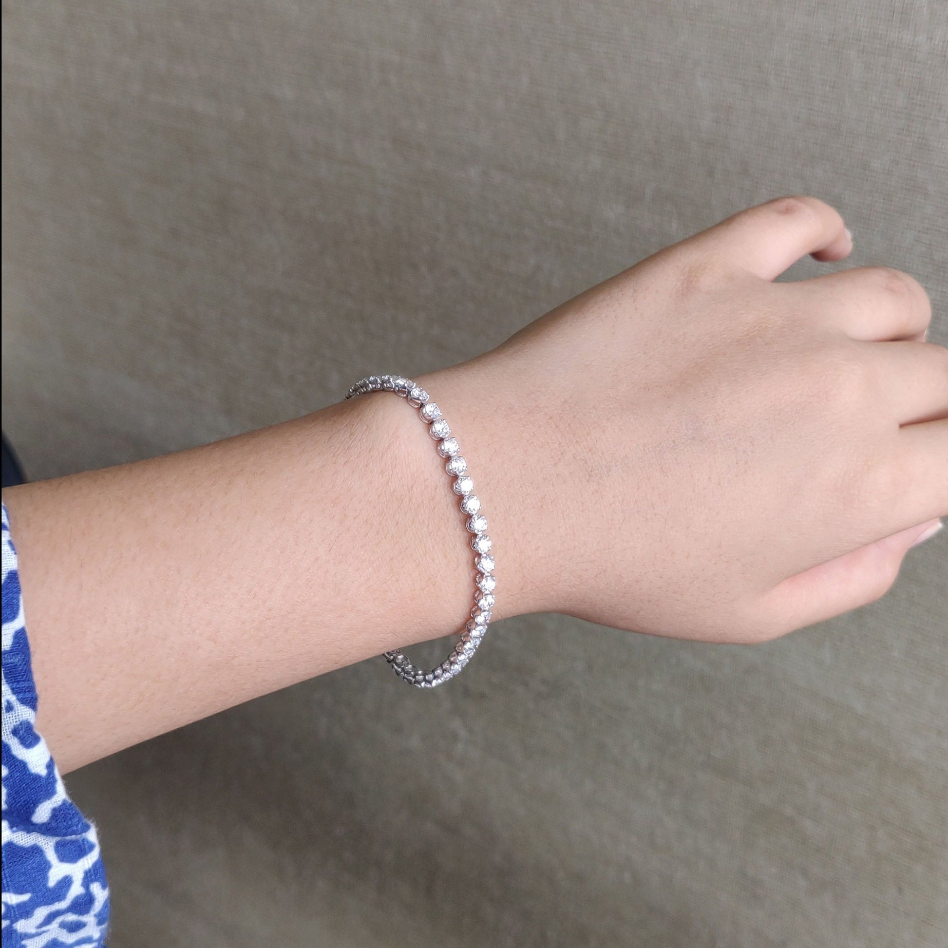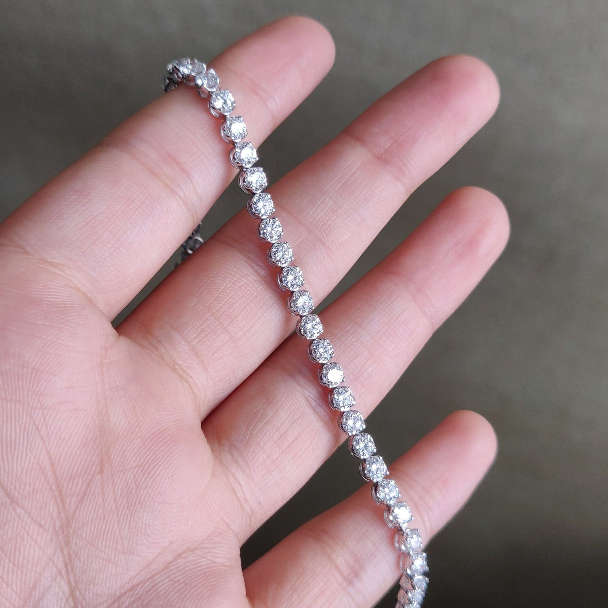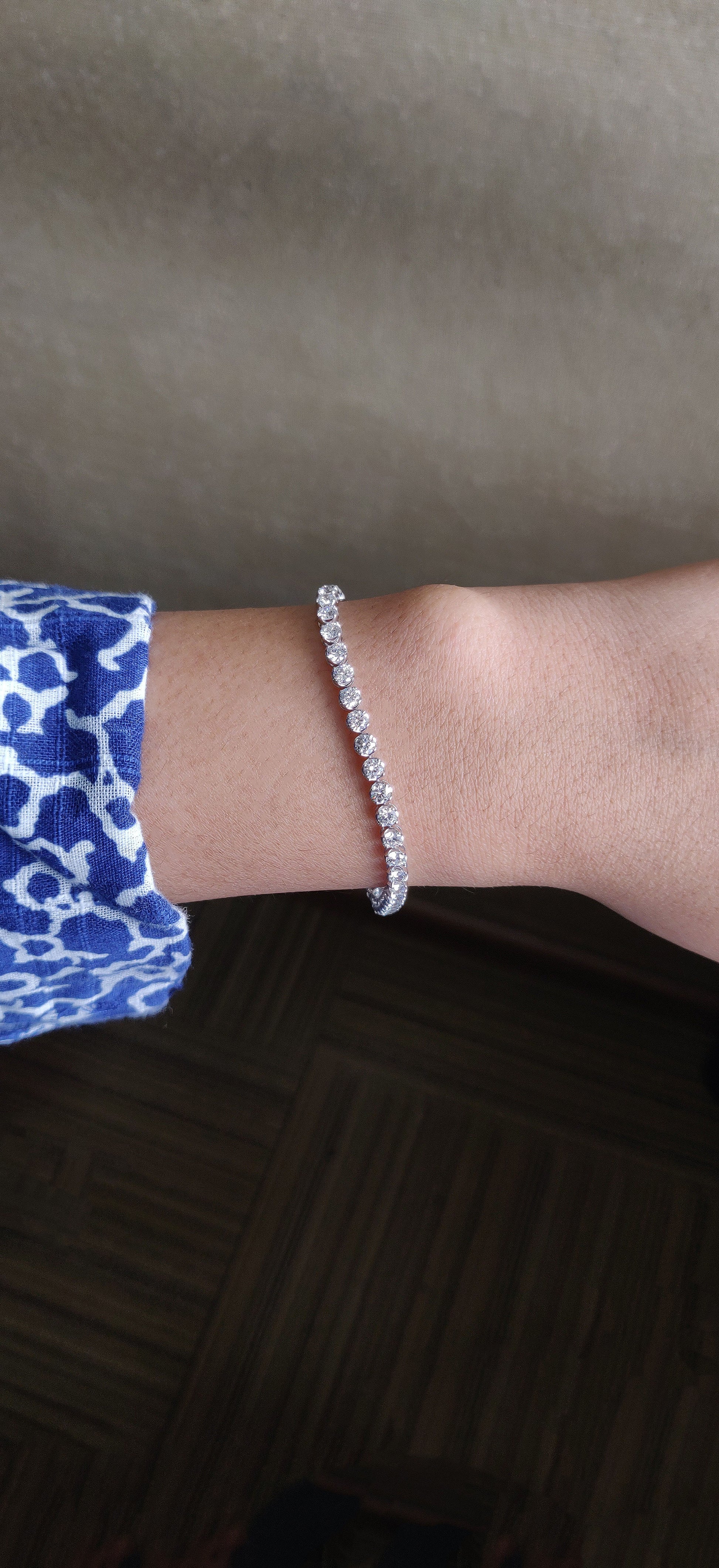 Introducing our exquisite 18kt Gold Diamond Tennis Bracelet, a stunning accessory that epitomizes elegance and sophistication; a true testament to timeless beauty and luxury. Crafted with utmost precision and care, our diamond tennis bracelet features a lustrous 18kt gold setting with a scintillating brilliance of 0.10 cents diamond each and 4.42 carats total diamond weight. Each diamond is individually set in a secure prong setting, allowing them to gracefully encircle the wrist with a seamless flow of radiant sparkle.