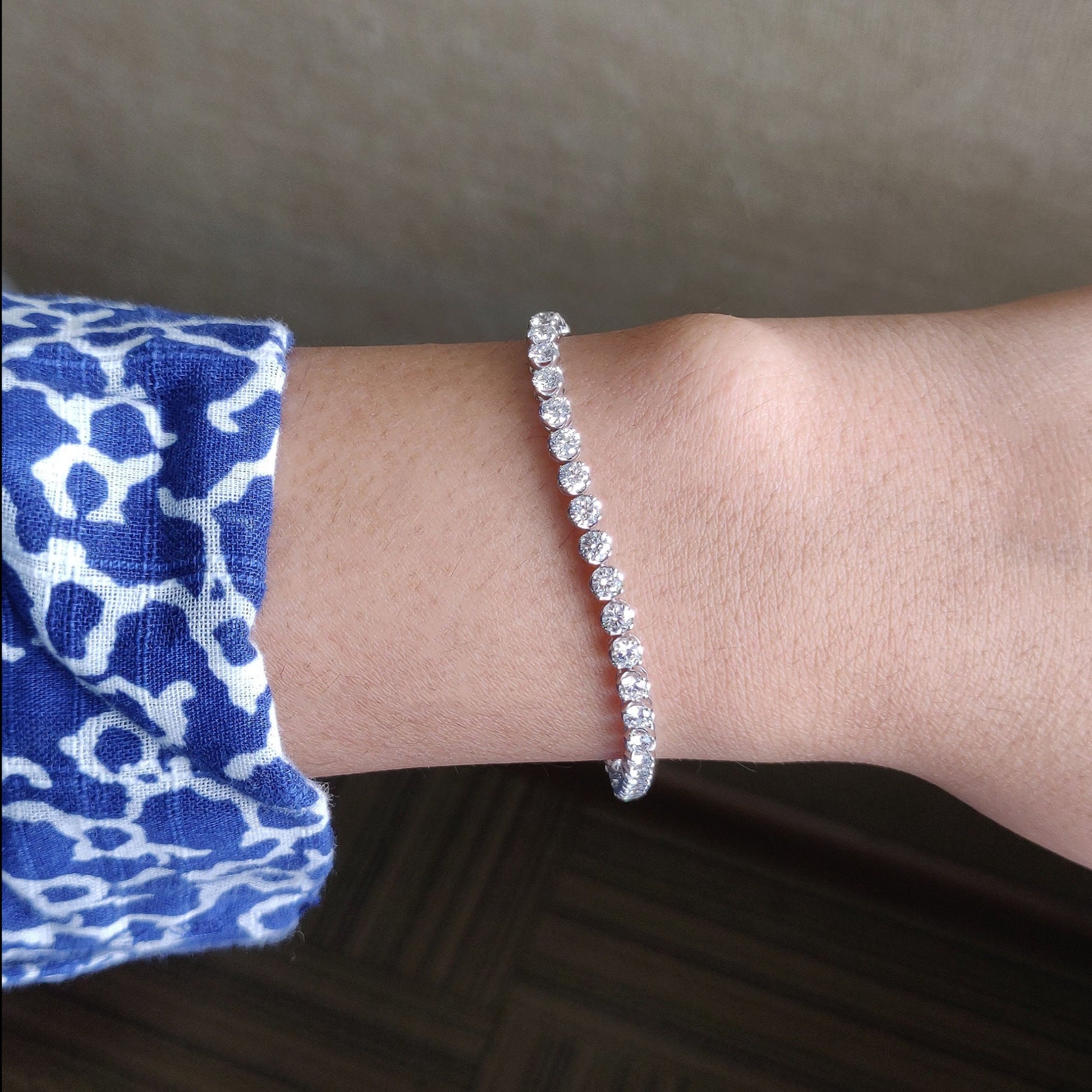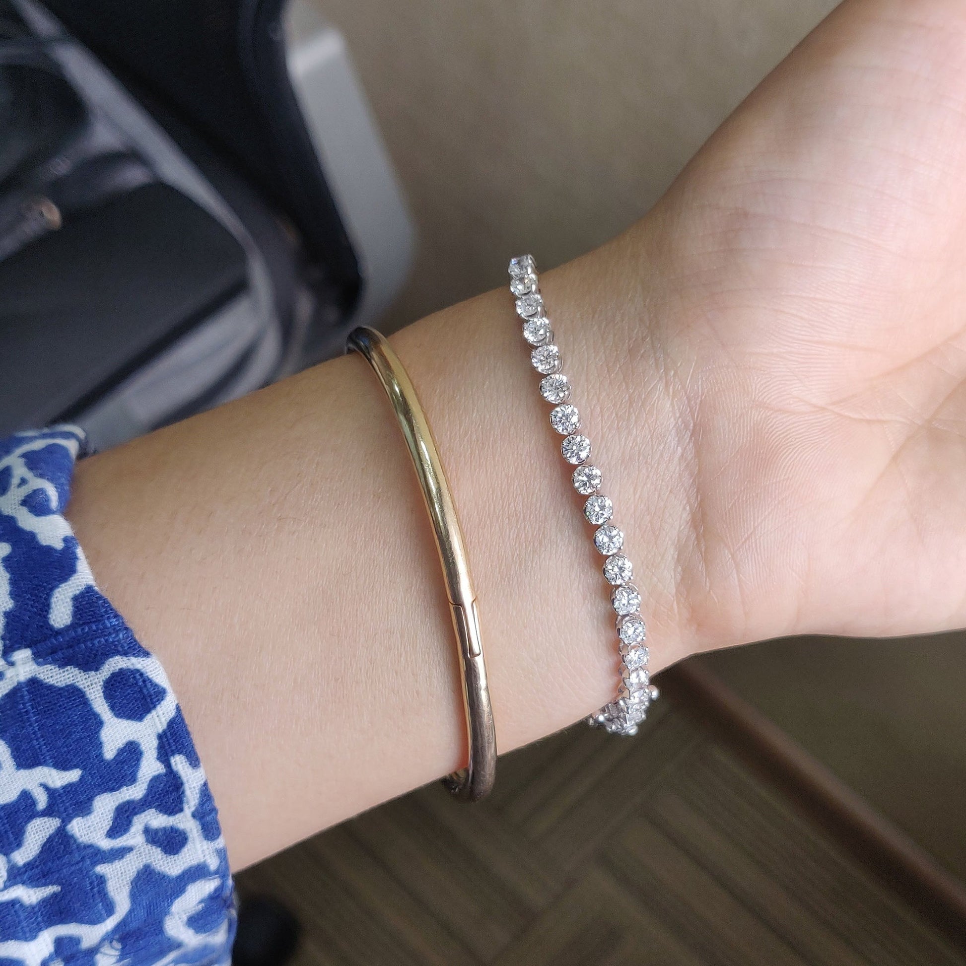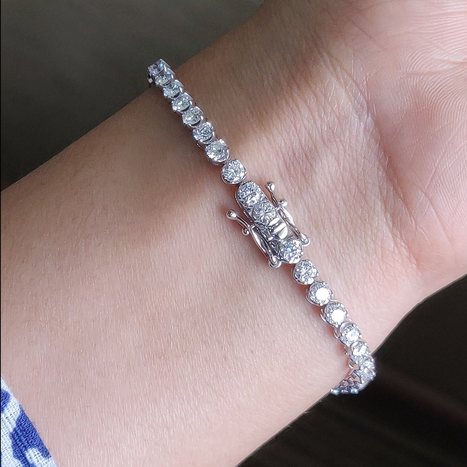 Introducing our exquisite 18kt Gold Diamond Tennis Bracelet, a stunning accessory that epitomizes elegance and sophistication; a true testament to timeless beauty and luxury. Crafted with utmost precision and care, our diamond tennis bracelet features a lustrous 18kt gold setting with a scintillating brilliance of 0.10 cents diamond each and 4.42 carats total diamond weight. Each diamond is individually set in a secure prong setting, allowing them to gracefully encircle the wrist with a seamless flow of radiant sparkle.