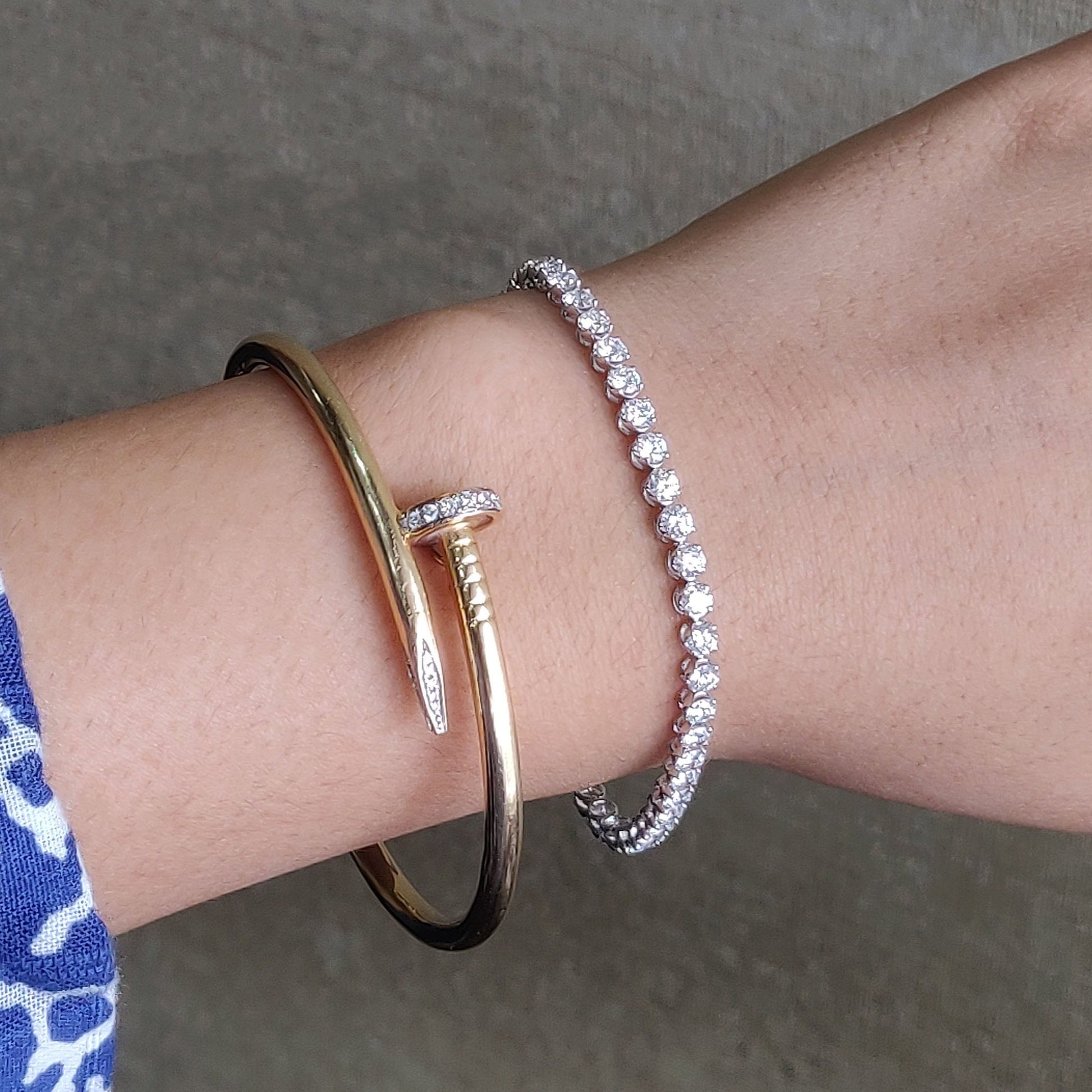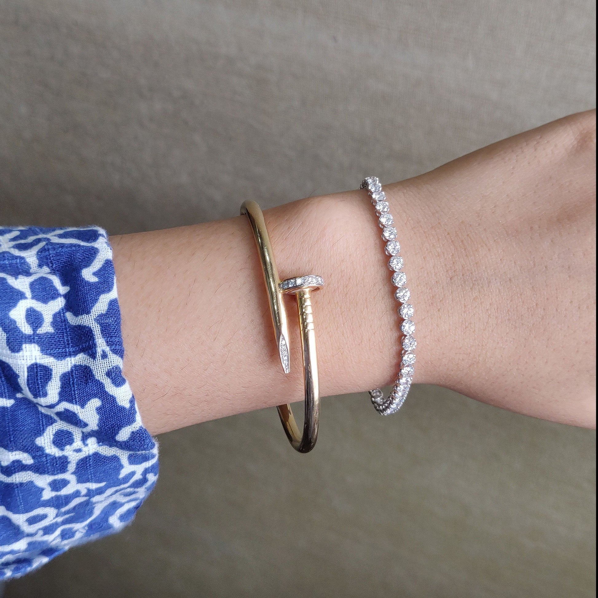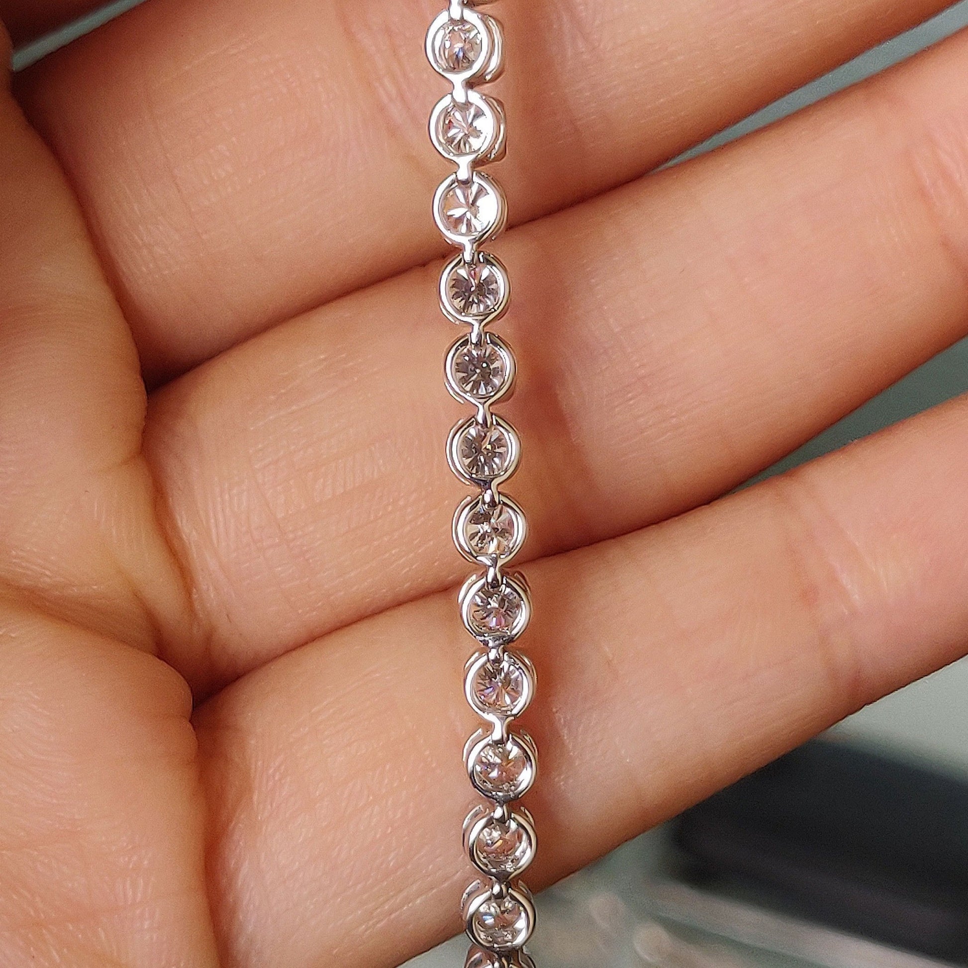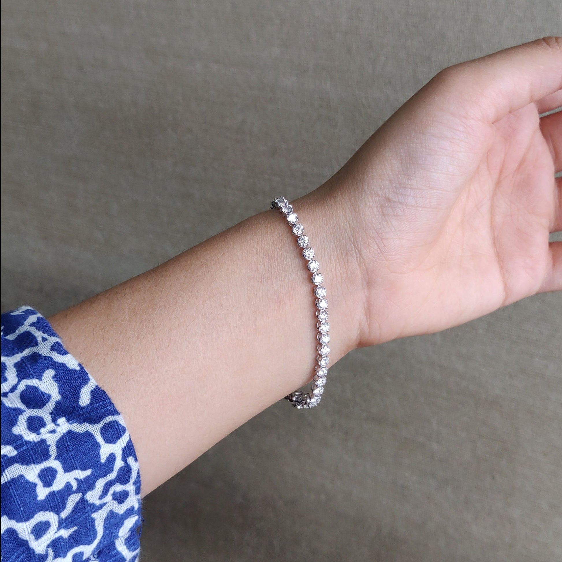 Introducing our exquisite 18kt Gold Diamond Tennis Bracelet, a stunning accessory that epitomizes elegance and sophistication; a true testament to timeless beauty and luxury. Crafted with utmost precision and care, our diamond tennis bracelet features a lustrous 18kt gold setting with a scintillating brilliance of 0.10 cents diamond each and 4.42 carats total diamond weight. Each diamond is individually set in a secure prong setting, allowing them to gracefully encircle the wrist with a seamless flow of radiant sparkle.