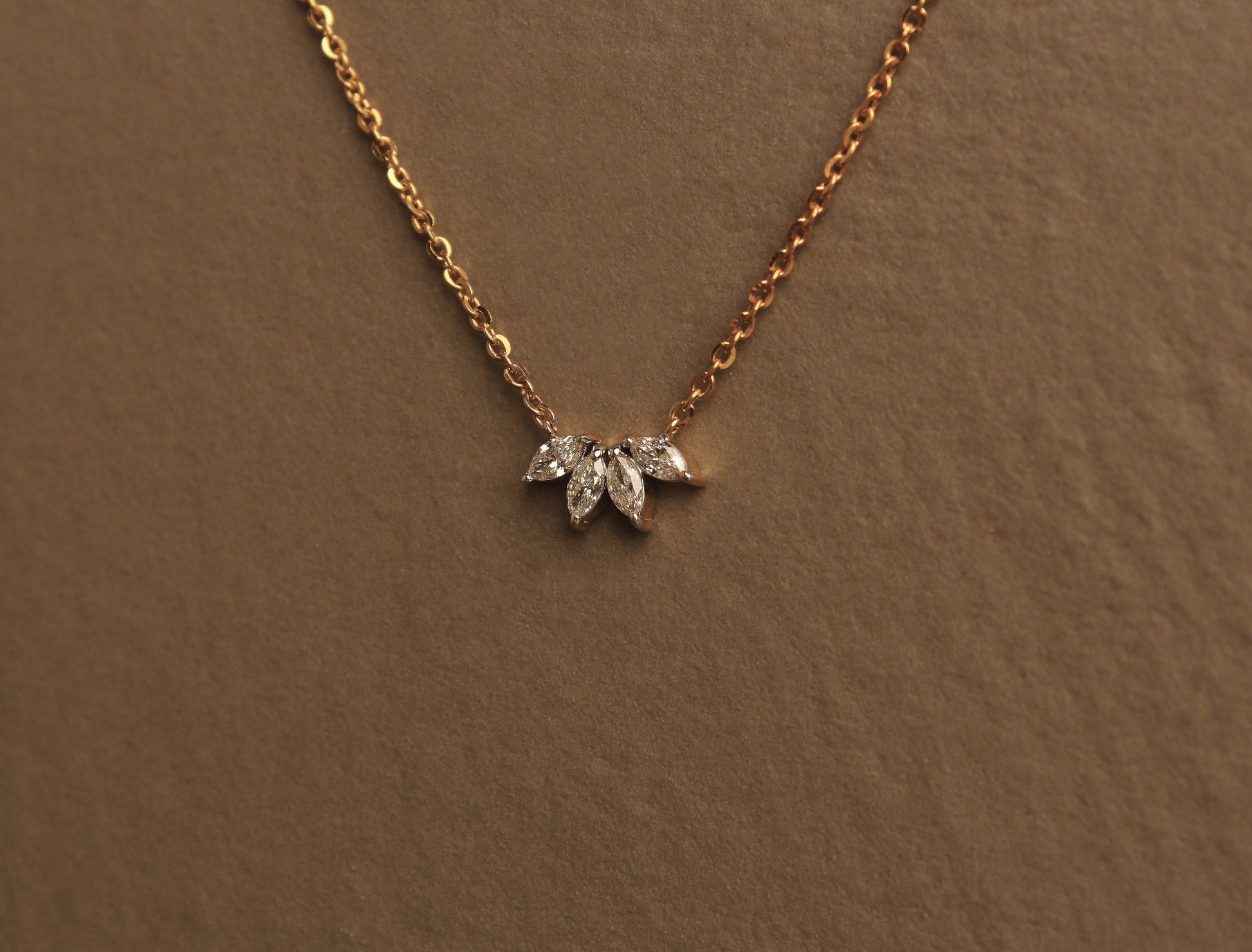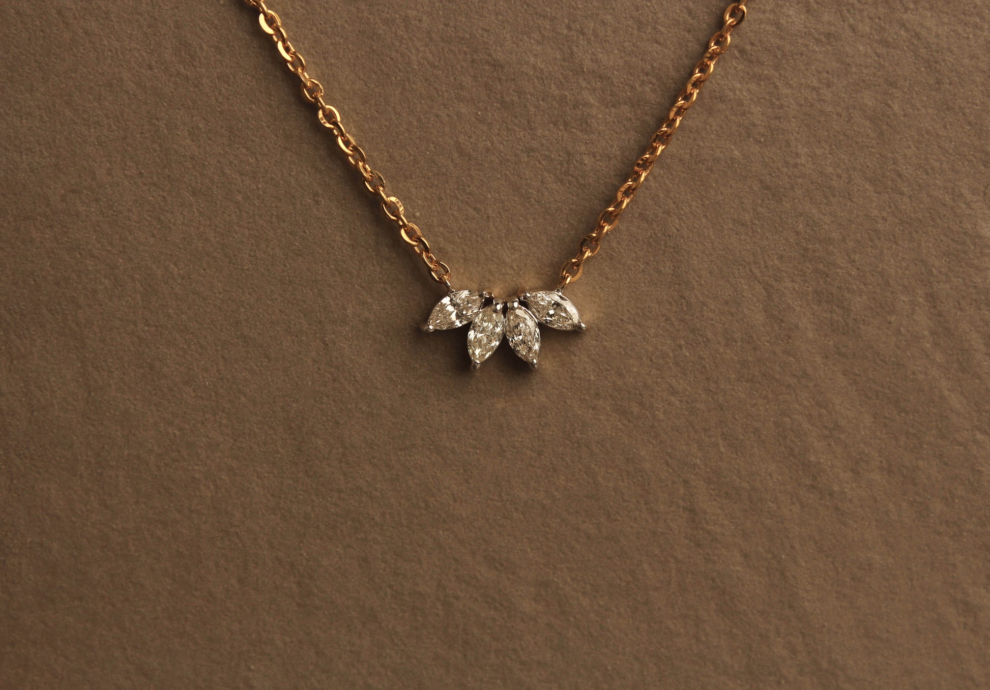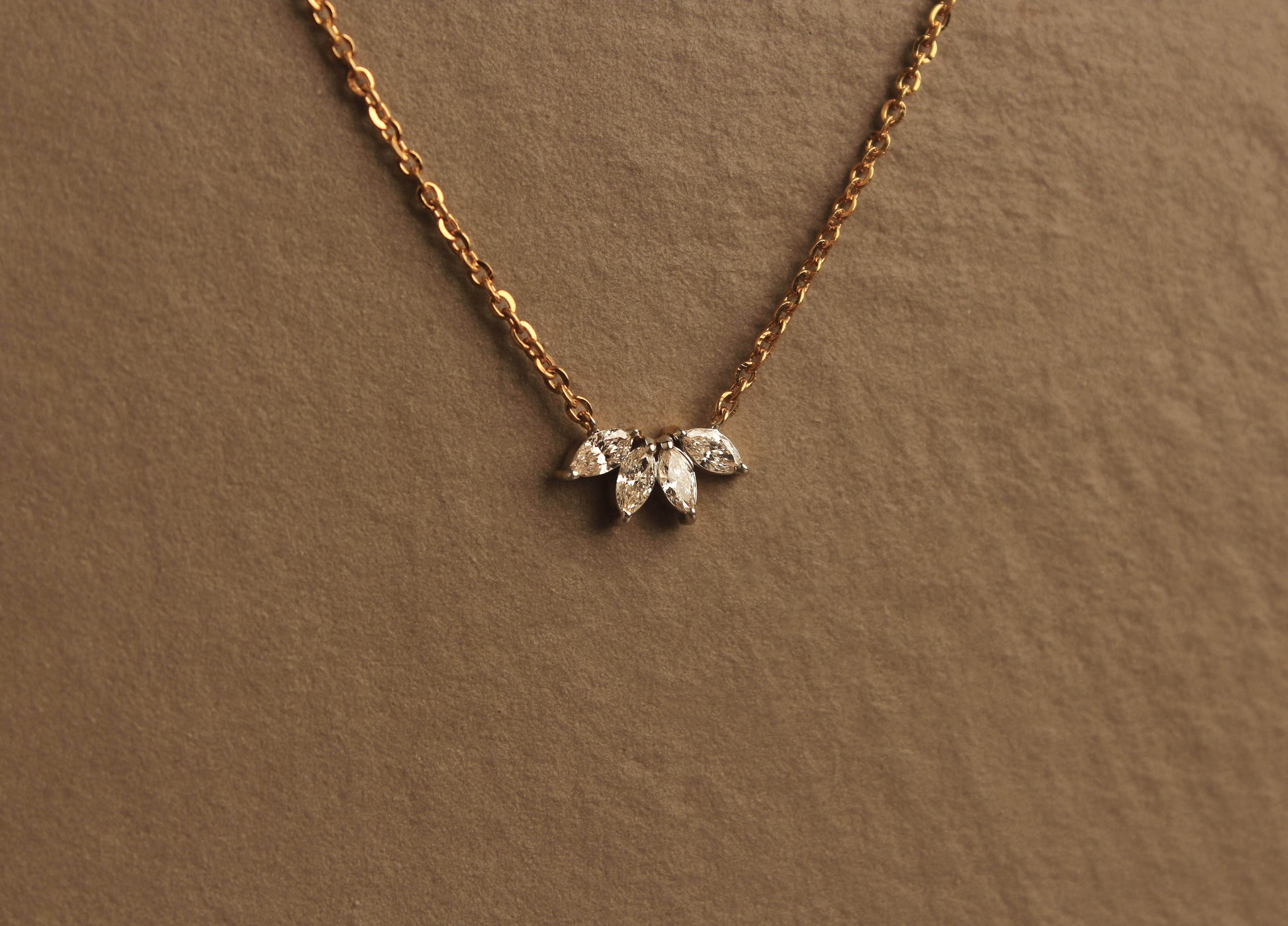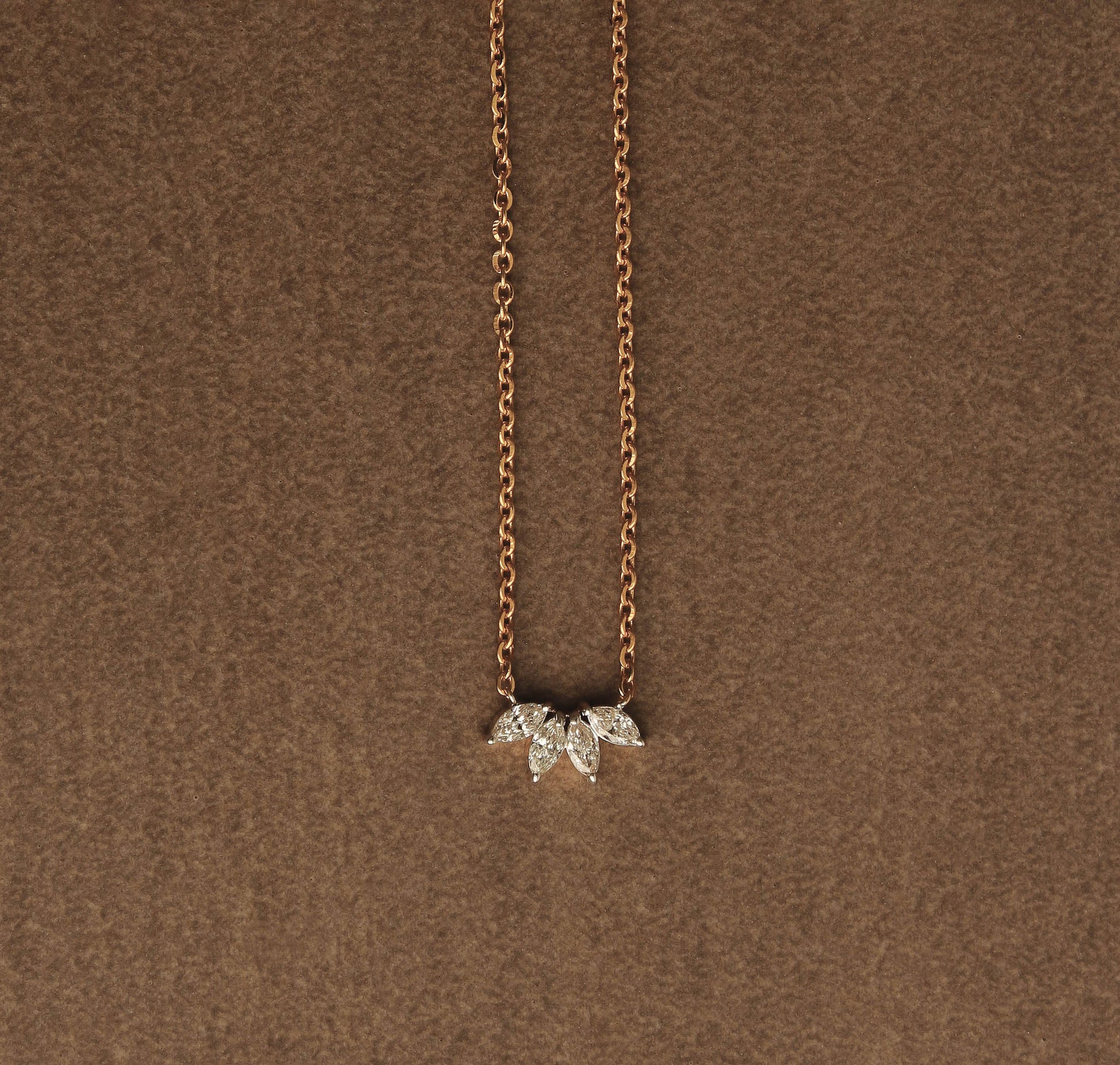 The eye-catching triple marquise pendant gold necklace is inspired by the lotus flower which blossoms through thick mud, a representation of inner strength and beauty. Available in 18k Solid Gol.d