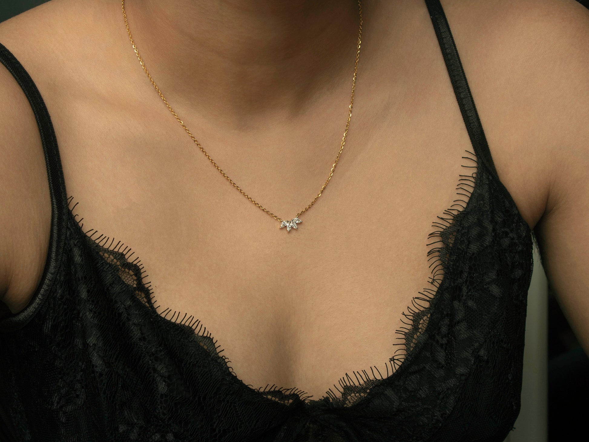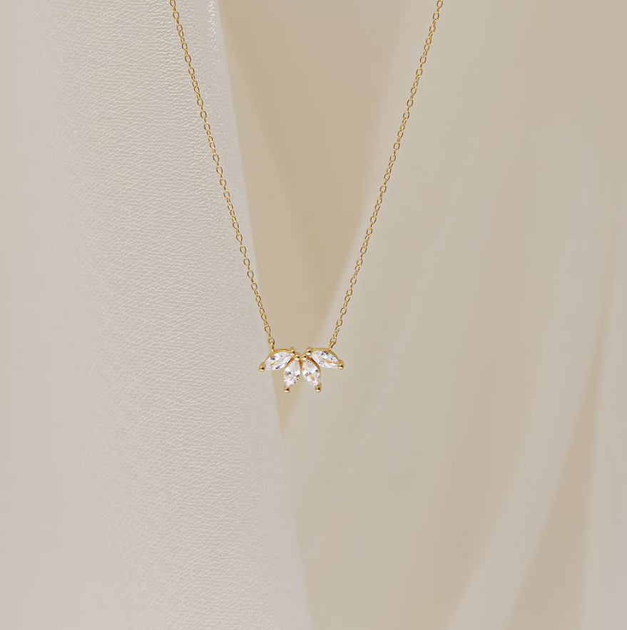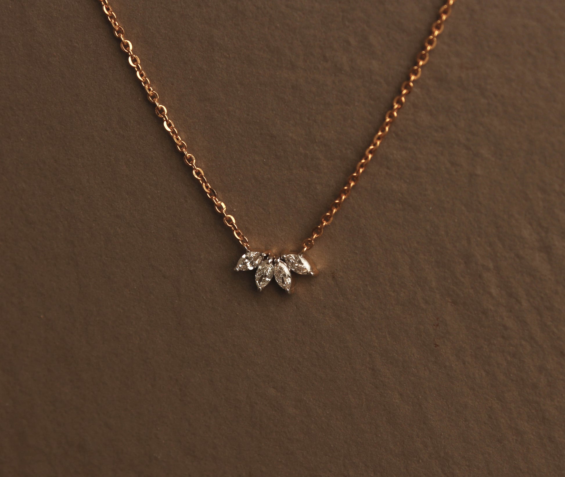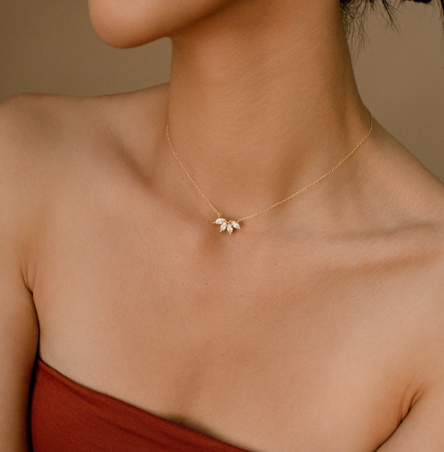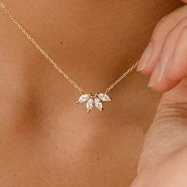 The eye-catching triple marquise pendant gold necklace is inspired by the lotus flower which blossoms through thick mud, a representation of inner strength and beauty. Available in 18k Solid Gol.d