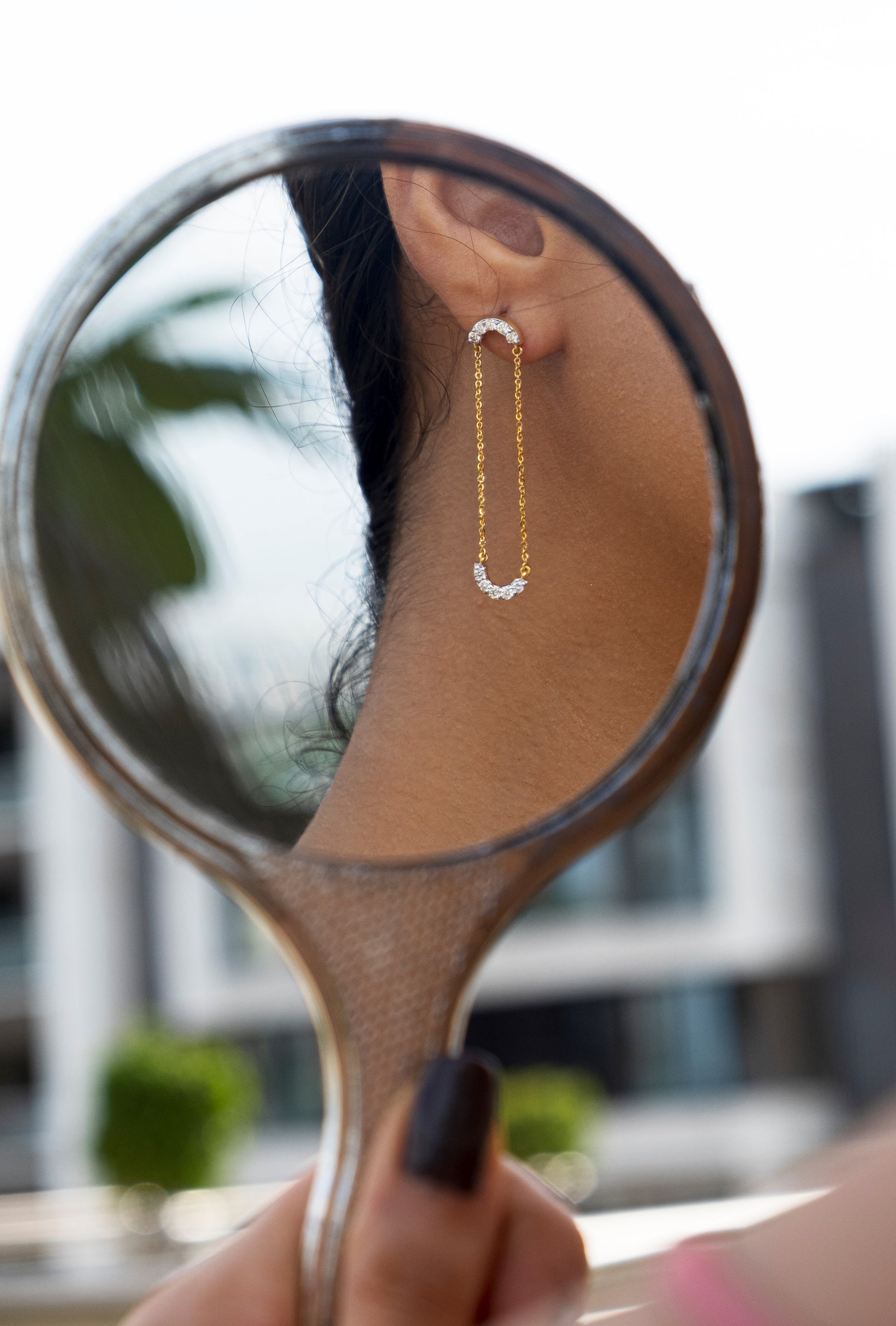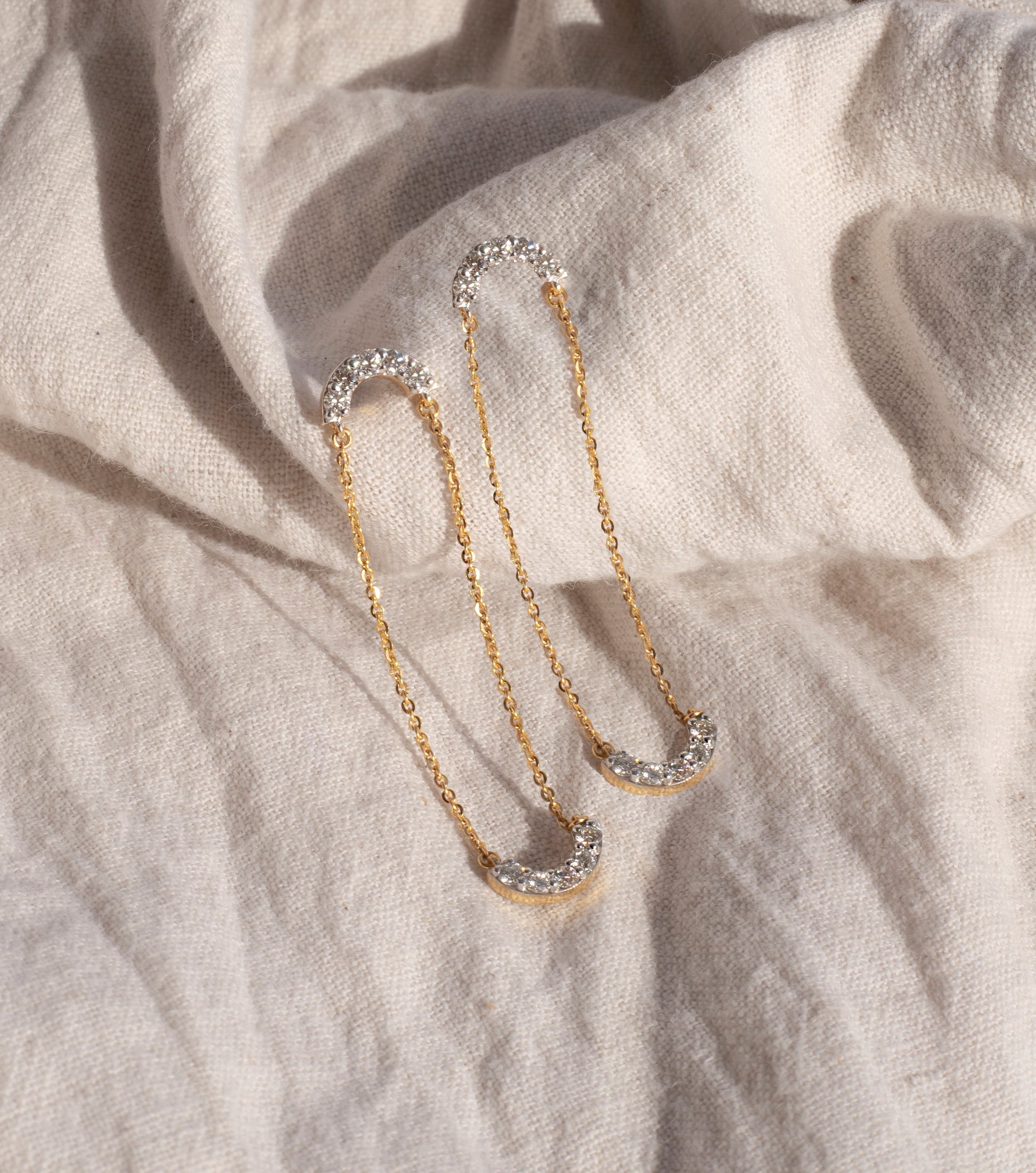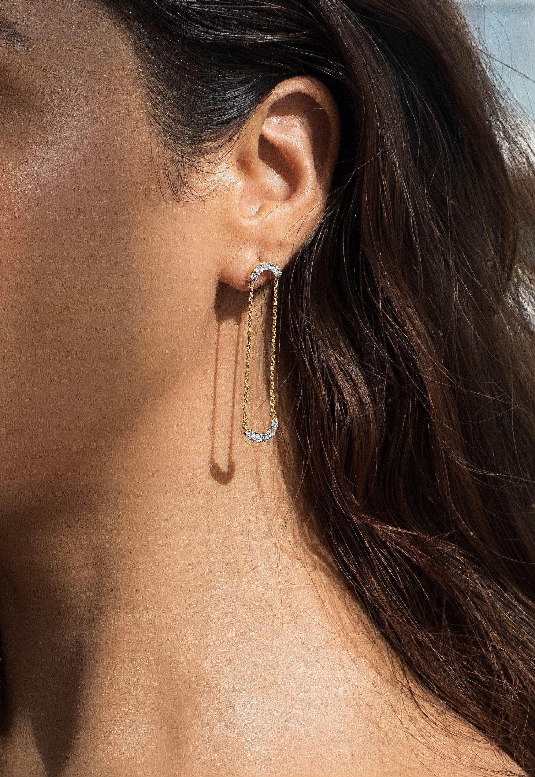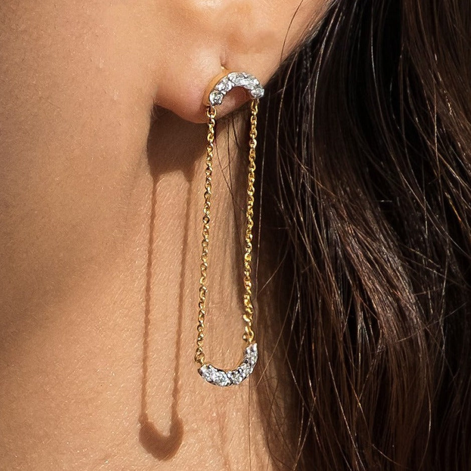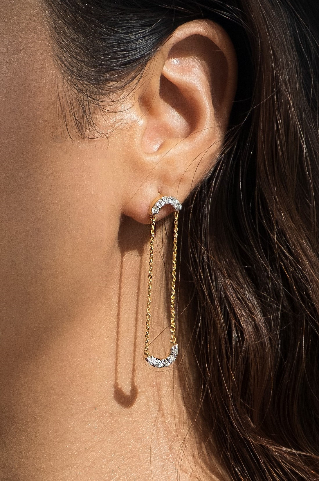 The Luna Diamond Earrings are an elegant choice, worn on their own or stacked with smaller studs. Each earring includes 20 diamonds and are sold as a pair. Available in 18k Solid Gold.