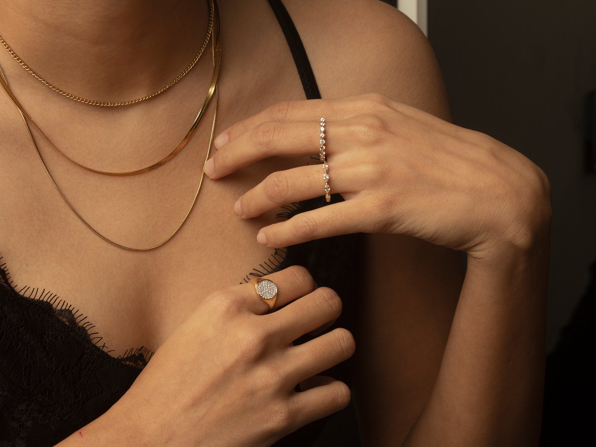 Each piece is made-to-order and hand-crafted with a unique diamond setting, so please allow for a longer ship time.
