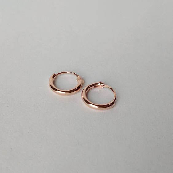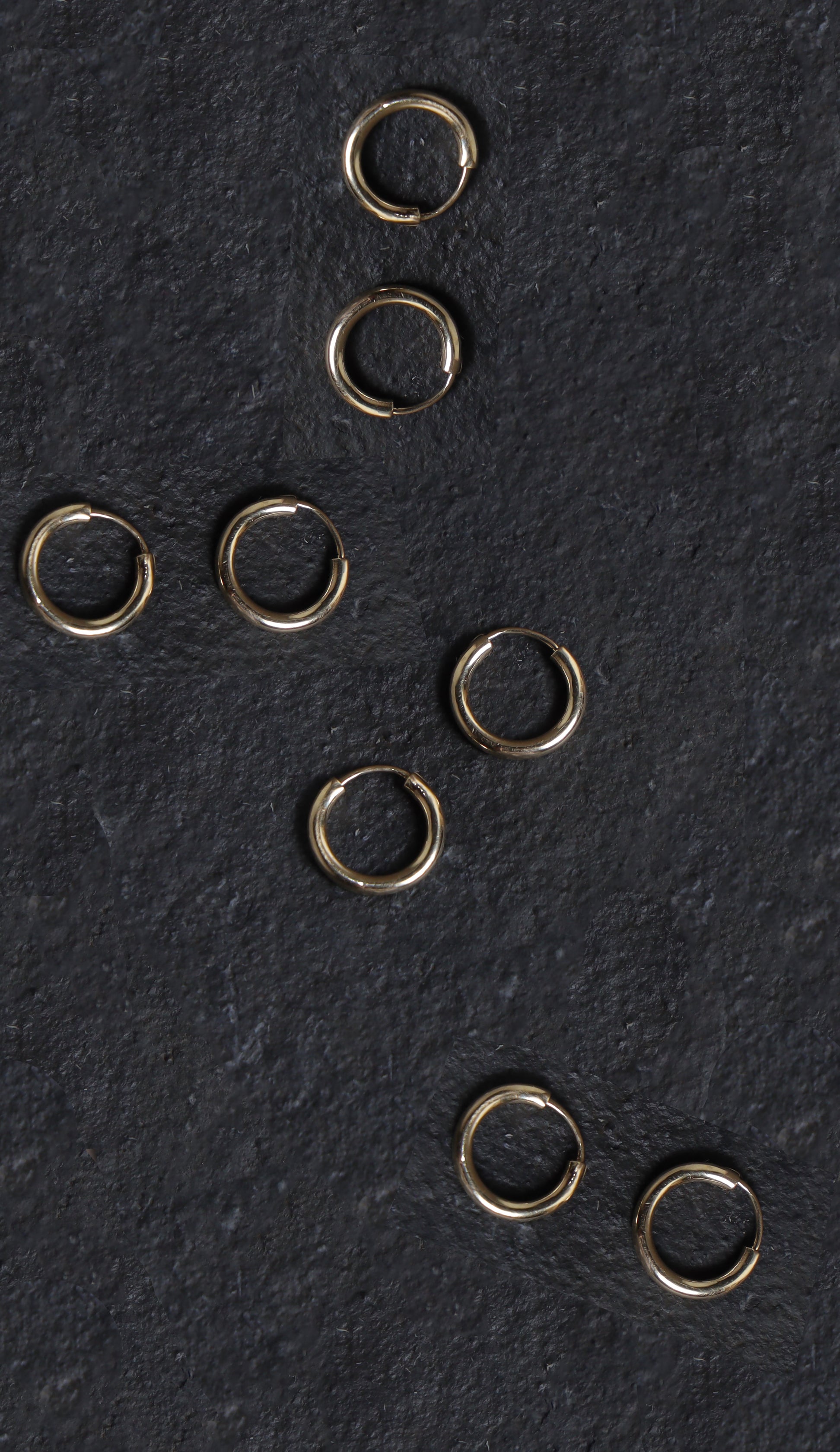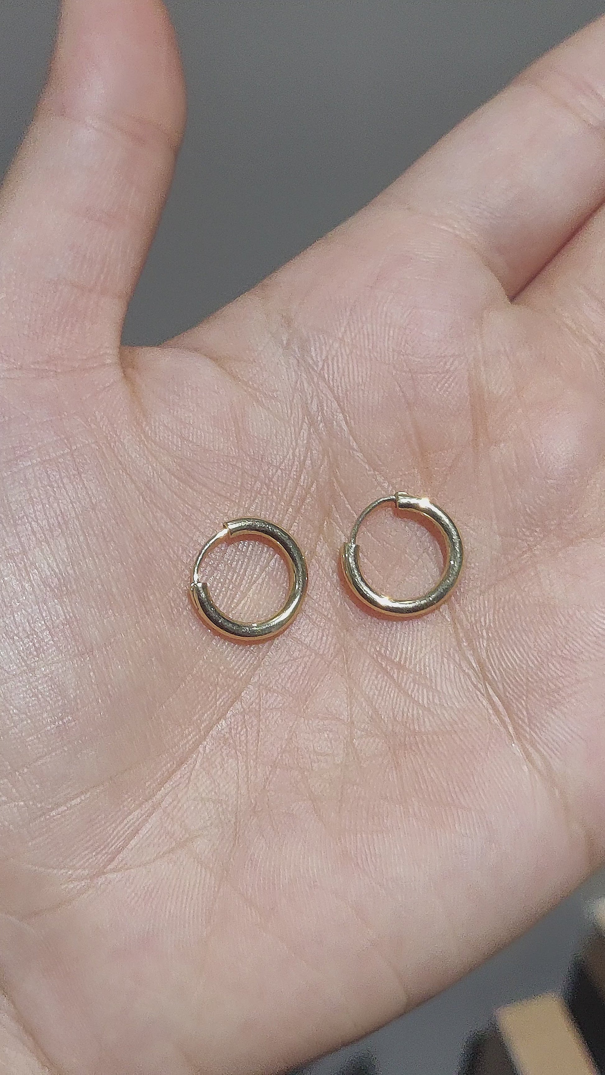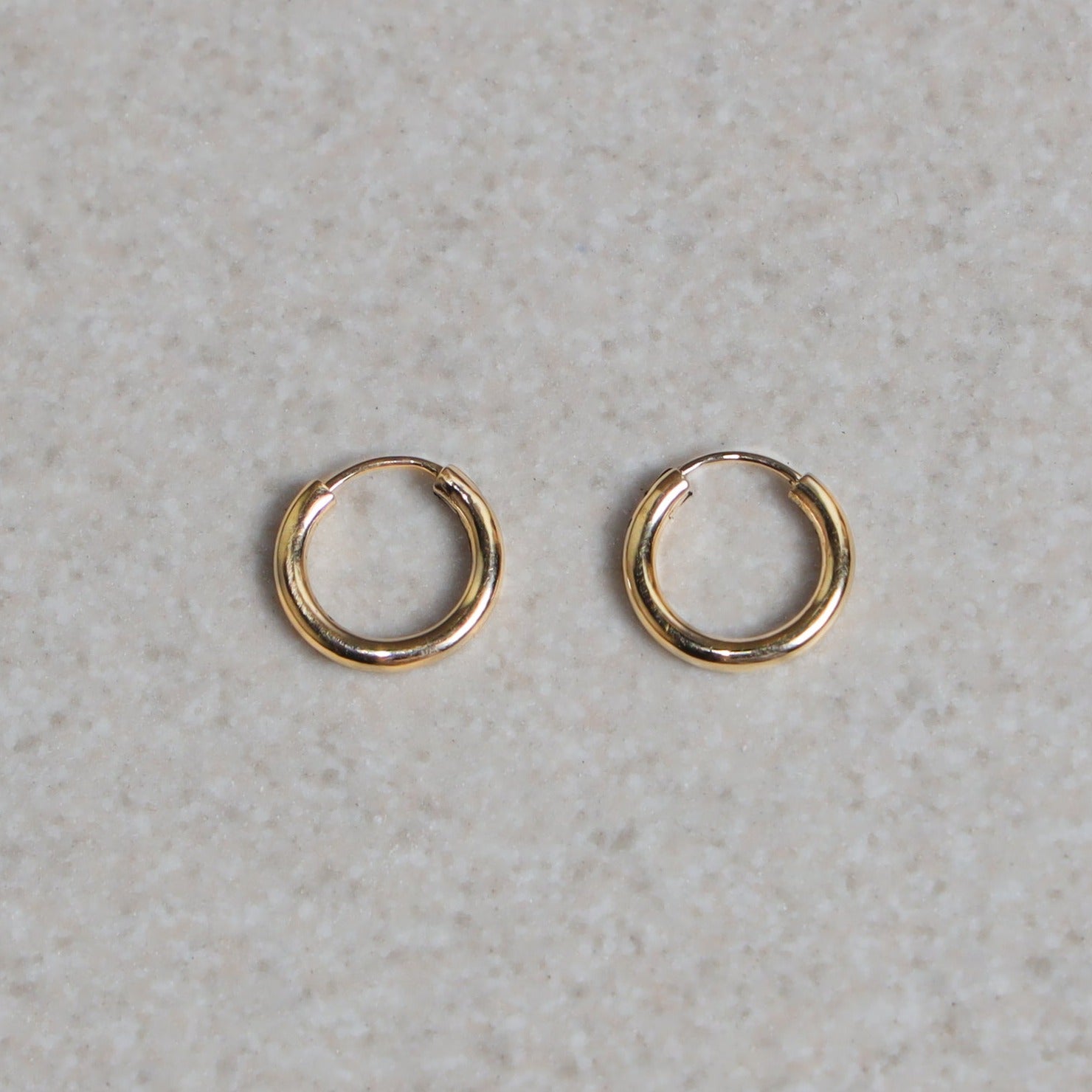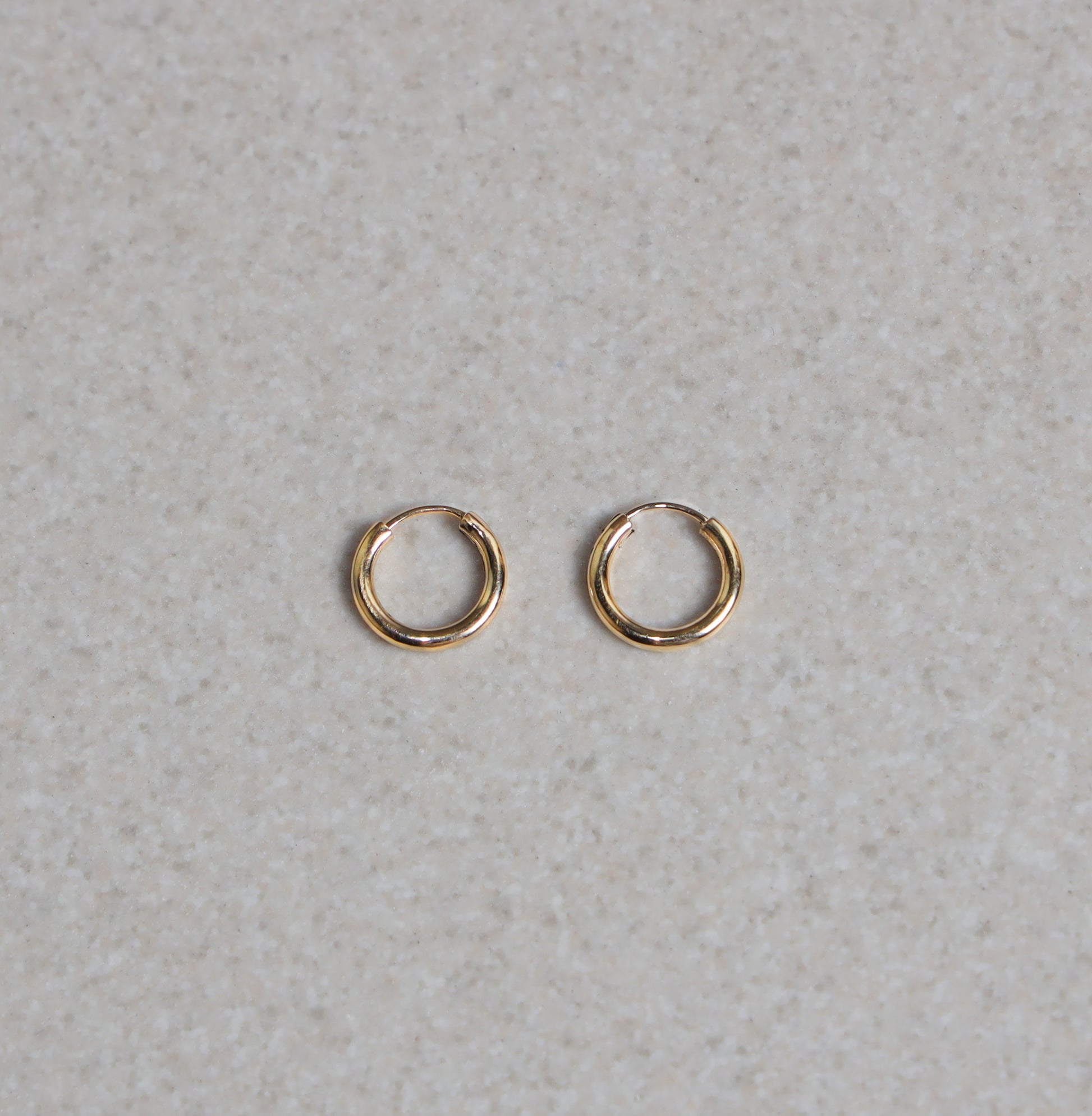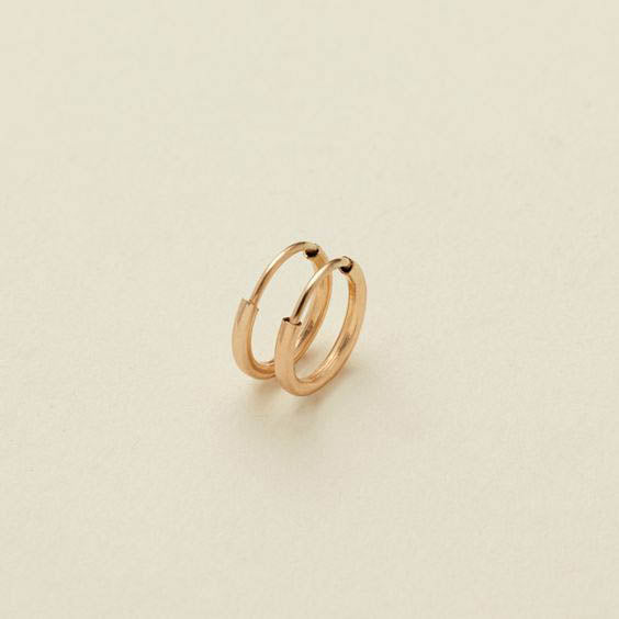 Hoop measures approximately 8mm diameter and features a huggie closure. Earrings are made from 18k solid gold and are sold as a pair.