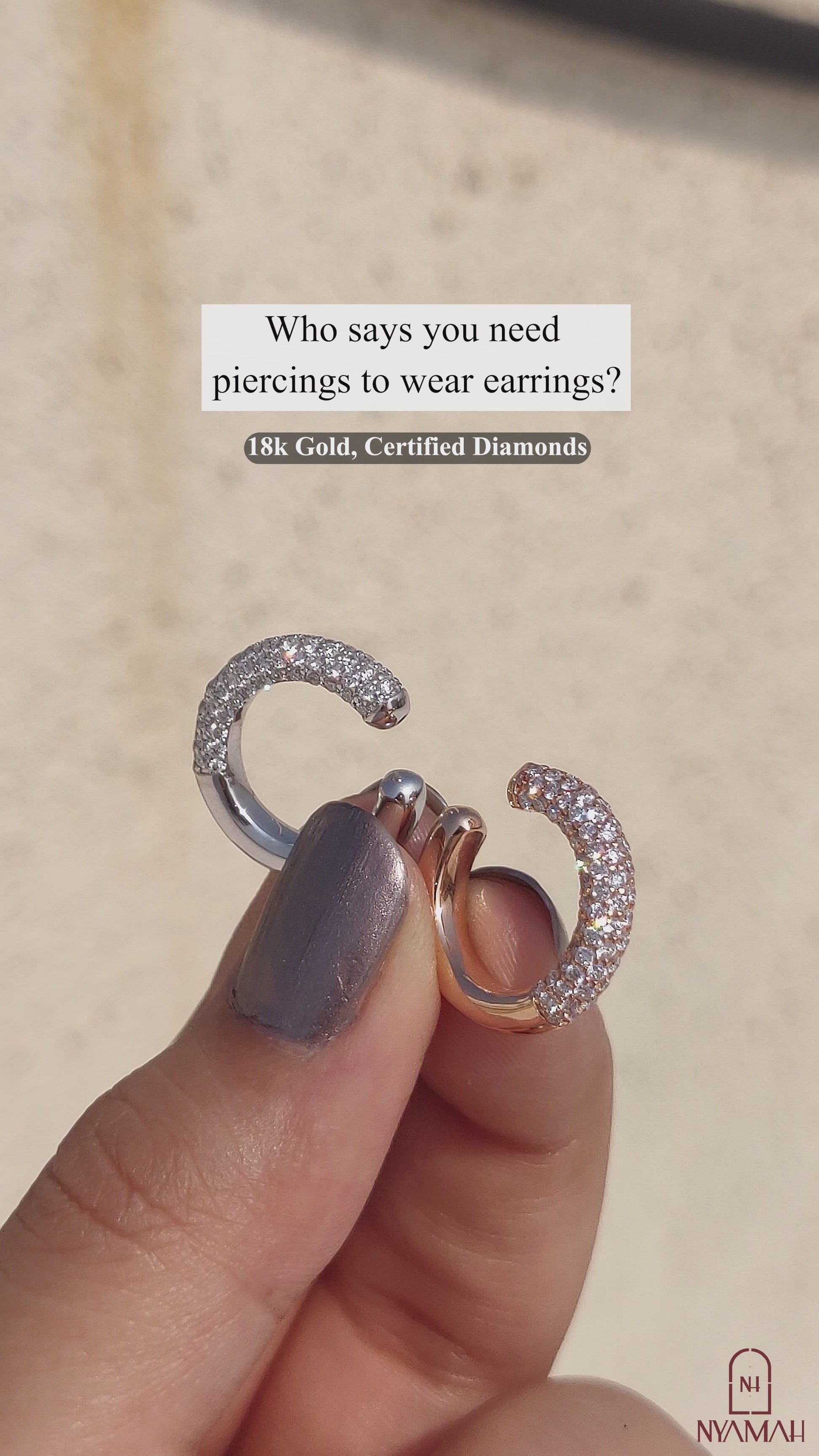 The Nebula Diamond Earcuffs encapsulate the spirit of refinement and glamour, enabling you to make a captivating statement without the need for piercings. Designed to provide a seamless and personalized fit, these earcuffs are custom-made to suit the unique contours of your ears. Their ergonomic design ensures a snug fit, effortlessly enveloping your earlobes with a secure embrace. Whether you're attending a glamorous soirée or simply desire an everyday touch of sophistication, the Nebula Diamond Earcuffs are your go-to choice for effortless elegance.