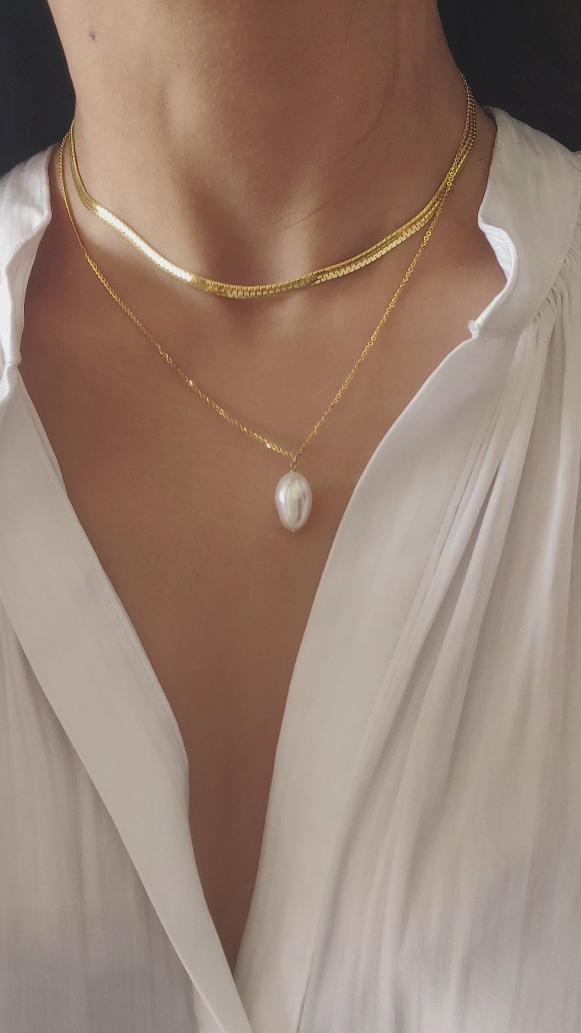 An even bolder spin on a well-loved classic, this pearl pendant was made to be stacked and seen. Handcrafted in 18k solid gold and a freshwater pearl.