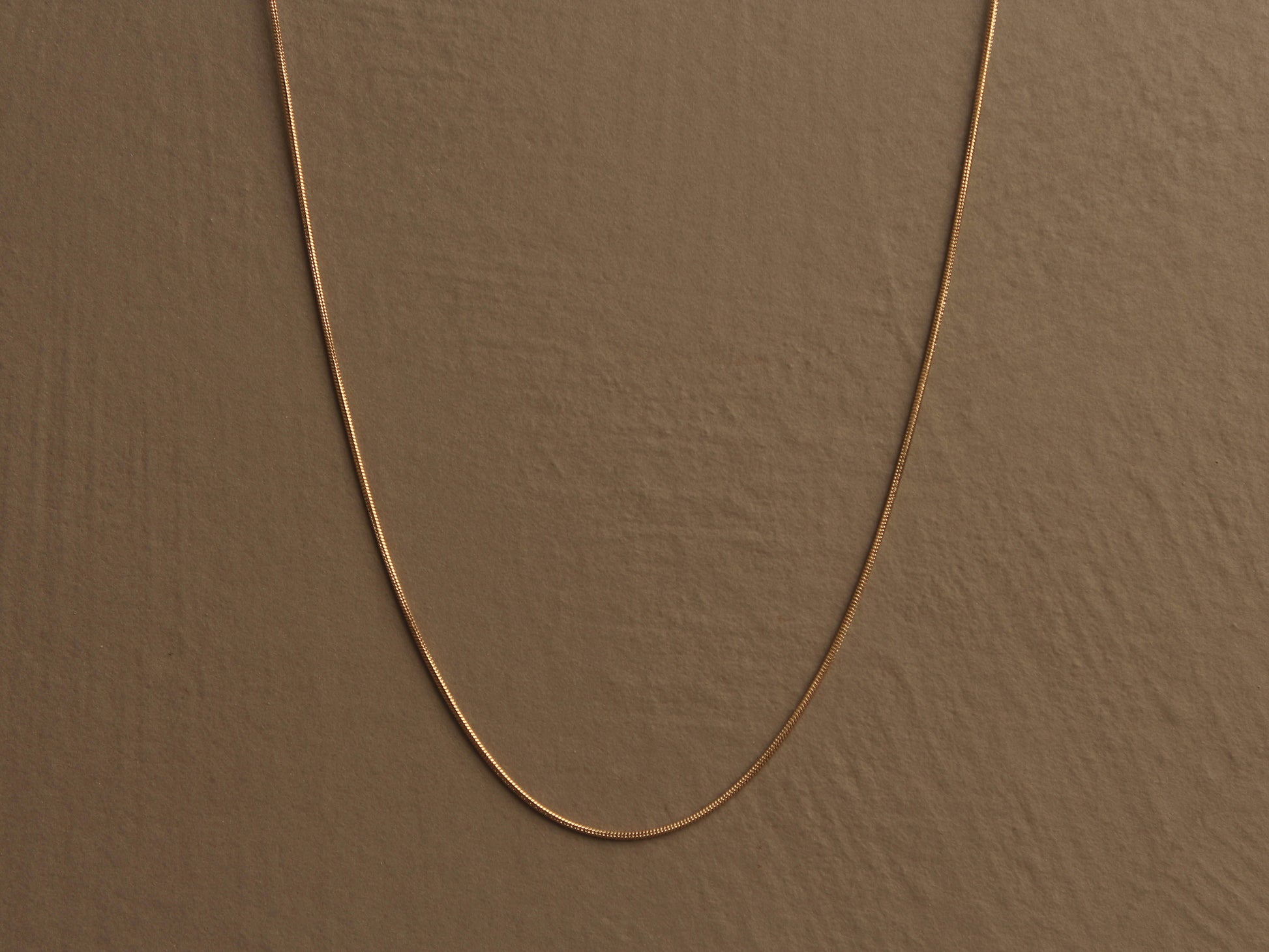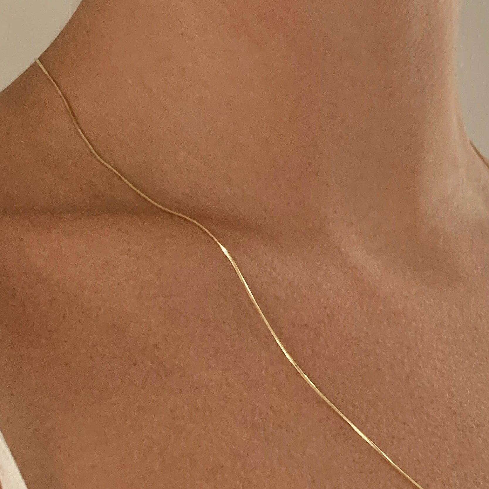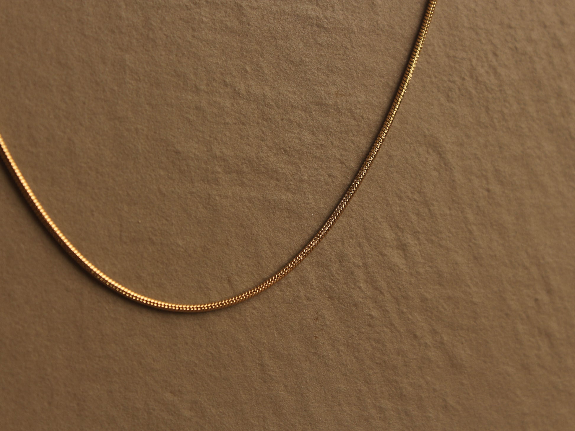 The 18kt Slinky Snake Chain is the perfect add-on to any wardrobe. Shiny and dainty, goes with casual or more elegant style. Great to combine with other pieces from our shop for a layered look.