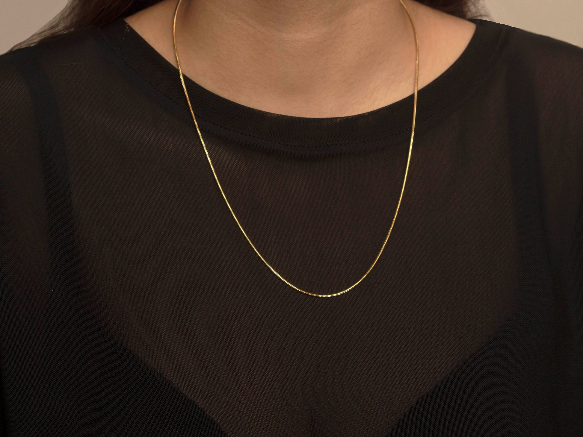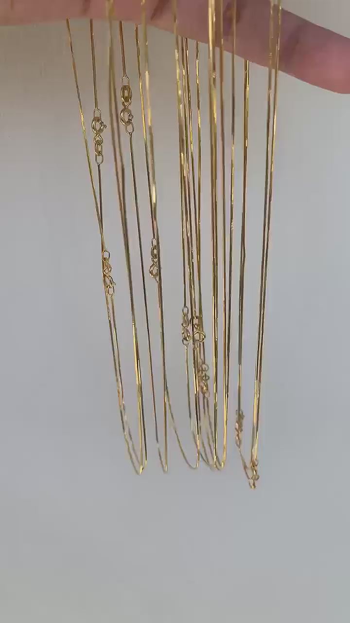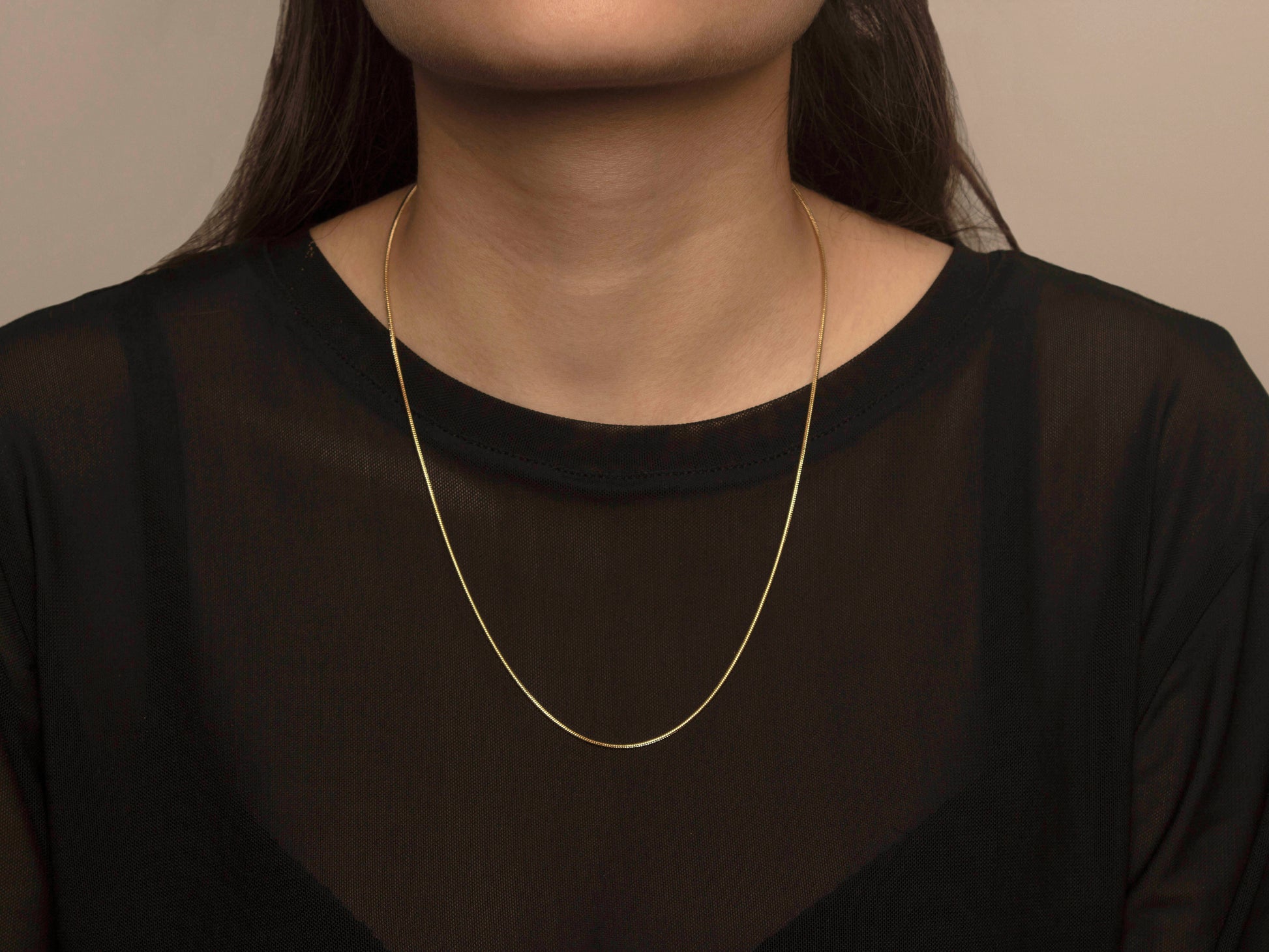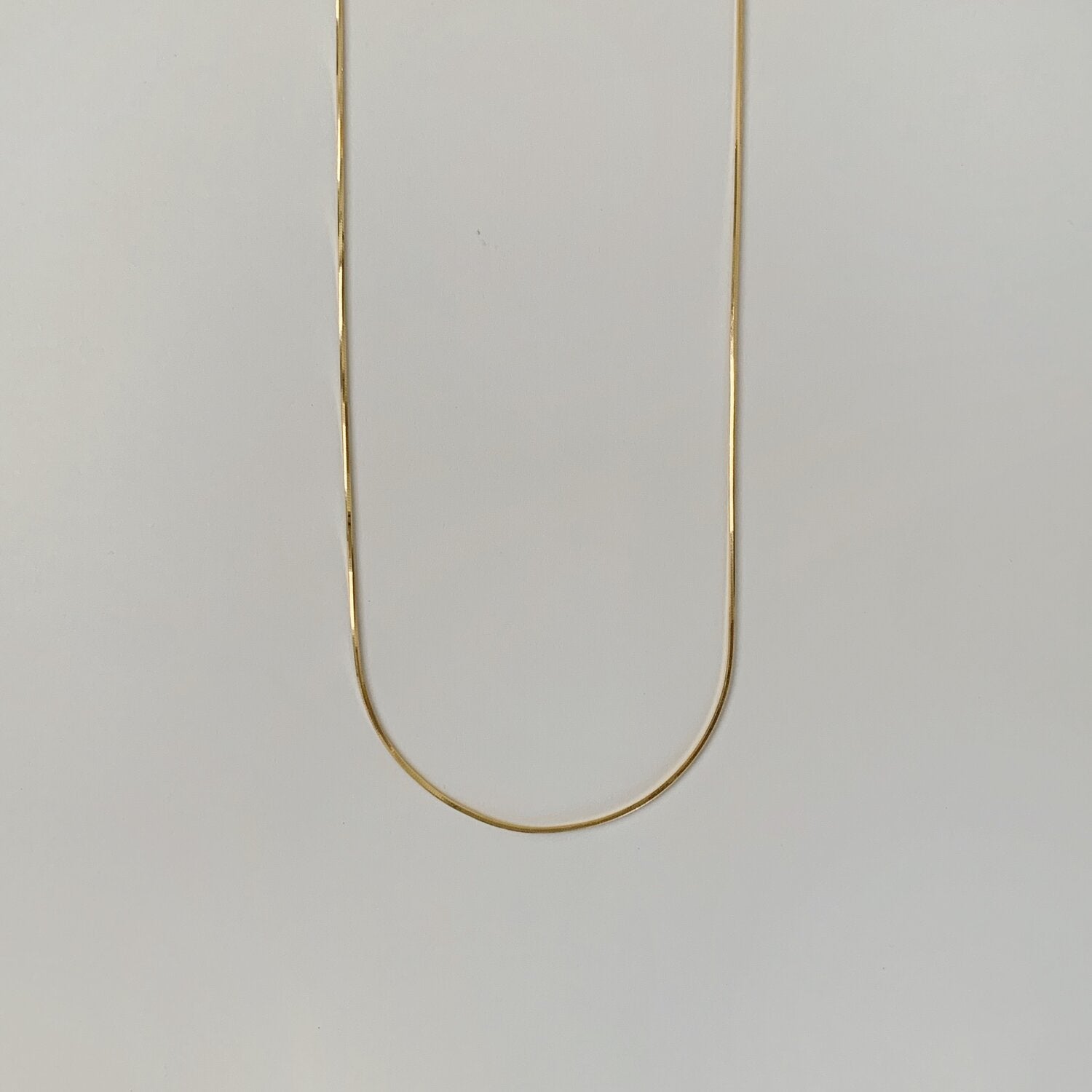 The 18kt Slinky Snake Chain is the perfect add-on to any wardrobe. Shiny and dainty, goes with casual or more elegant style. Great to combine with other pieces from our shop for a layered look.