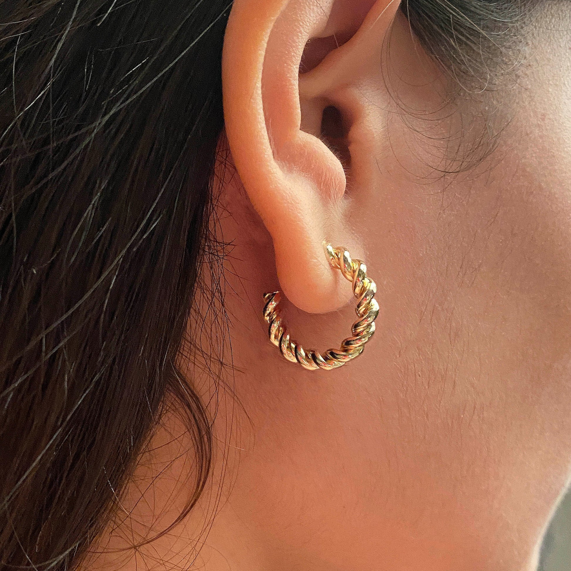 In any collection of essential pieces of jewelry, hoop earrings are, without a question, a linchpin—a must-have, a go-to, a classic staple. Regardless of size, metal, and material, hoop earrings never fail to make one feel more put together. Available in 18k Solid Gold.